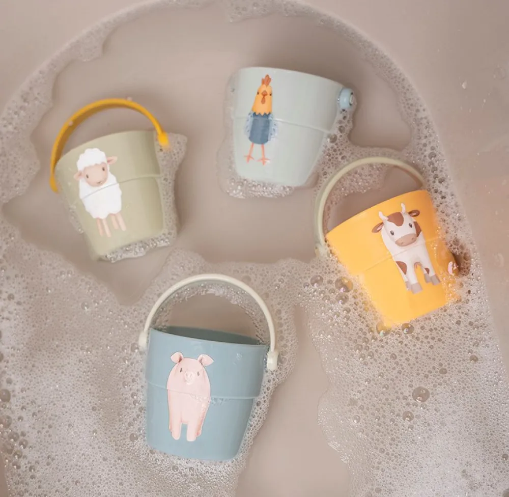 Stapelen, vullen, gieten en SPLASH! Je kleintje zal extra genieten tijdens het badderen met deze set van 4 badbekers. Ze zijn er in 4 verschillende kleuren en zijn versierd met de leukste boerderijdieren uit de Little Farm collectie. Zo is er een badbeker met een schaap, varken, koe en een haan. De maat is precies goed voor kleine handjes en spelen met de kleine emmertjes helpt bij de ontwikkeling van motorische vaardigheden. Stapel ze op elkaar om een grote toren te bouwen of om ze omver te werpen. Of vul ze met water en zie er verschillende vormen uitstromen.
