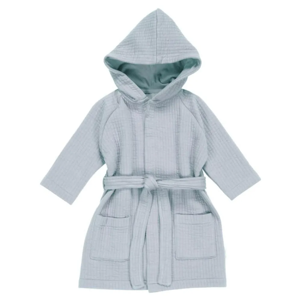 Je kindje blijft na het badje heerlijk warm in dit mooie badjasje met capuchon in de kleur Pure Soft Blue in de maat 98/104, gemaakt van katoen. Verkrijgbaar in verschillende kleuren en in de maten 74/80, 86/92 en 98/104.