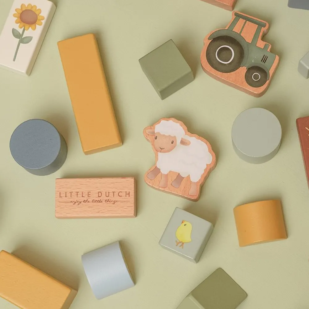 Deze houten blokken in ton zijn onmisbaar. In de ton zitten maar liefst 50 houten blokjes met de mooie prints van onze Little Farm collectie. Stapel de verschillende blokjes om de leukste boerderij te bouwen. De blokken staan garant voor heel veel bouwplezier en kunnen makkelijk opgeborgen worden in de ton!