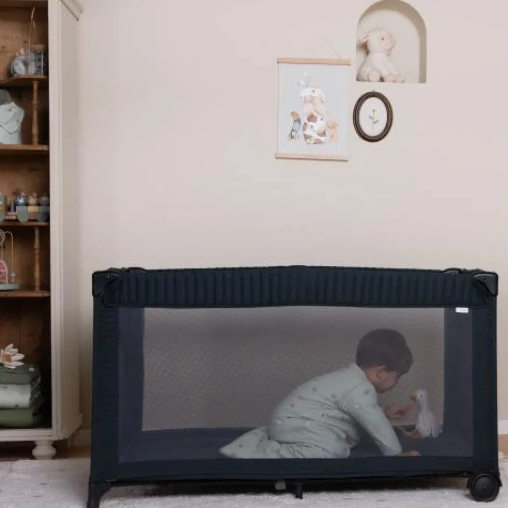 Wat zal je kindje heerlijk slapen in het campingbedje! Het bedje heeft standaard afmetingen en is erg praktisch in gebruik. Het campingbedje is voorzien van een wieltje zodat je hem gemakkelijk kunt verplaatsen. Ook is het campingbedje uitgevoerd met een kruipluik. Wanneer je dit luik open doet kan je kindje zelf uit bed kruipen wanneer hij uitgeslapen is. Dit voorkomt gevaarlijke klimpartijen. Het campingbedje is voorzien van zijkanten met gaas voor optimale luchtcirculatie. Je kunt het campingbedje gemakkelijk in- en uitvouwen. Het bedje wordt geleverd met een bodemmatras en is geschikt voor kinderen van 0-36 maanden met een maximum gewicht van 15 kg.