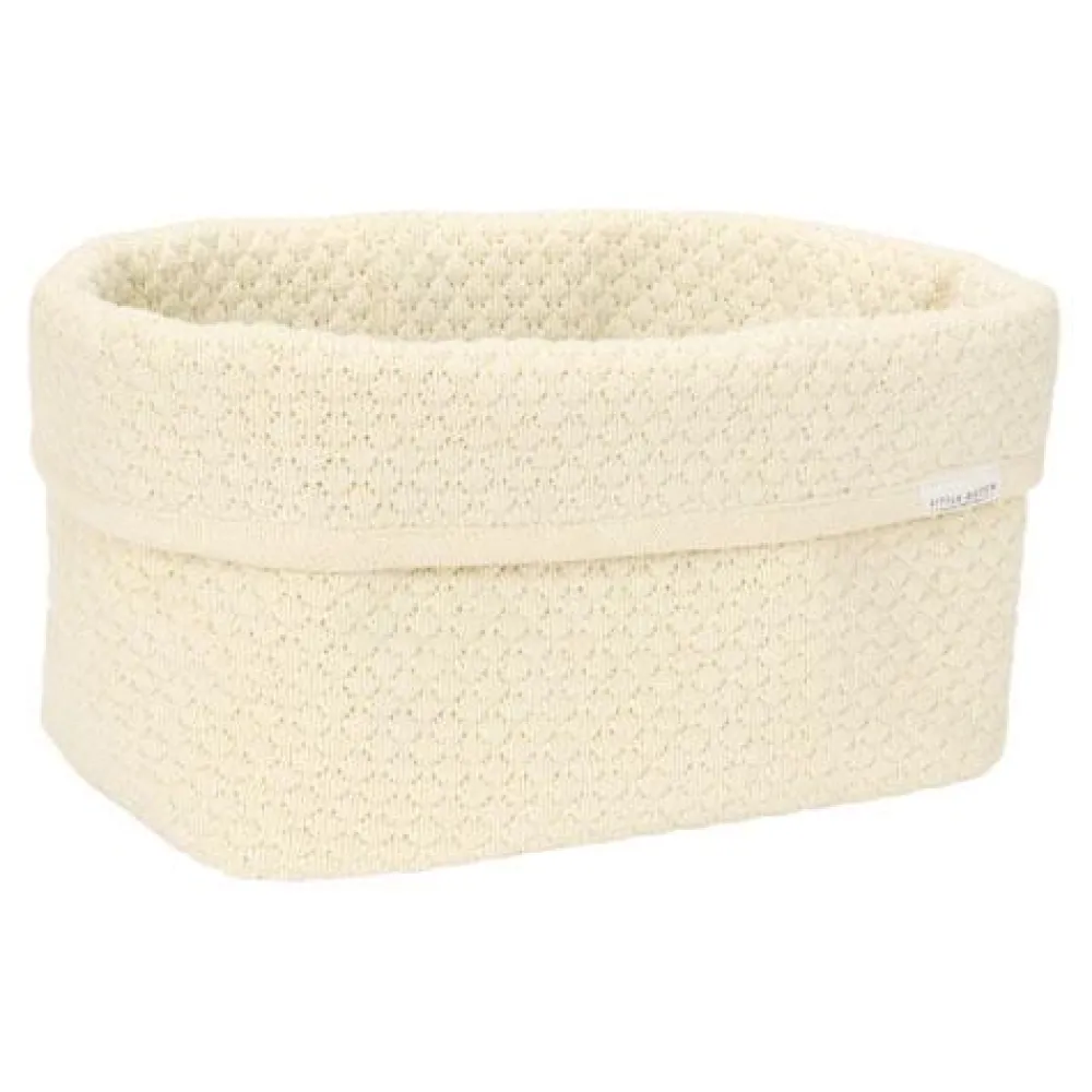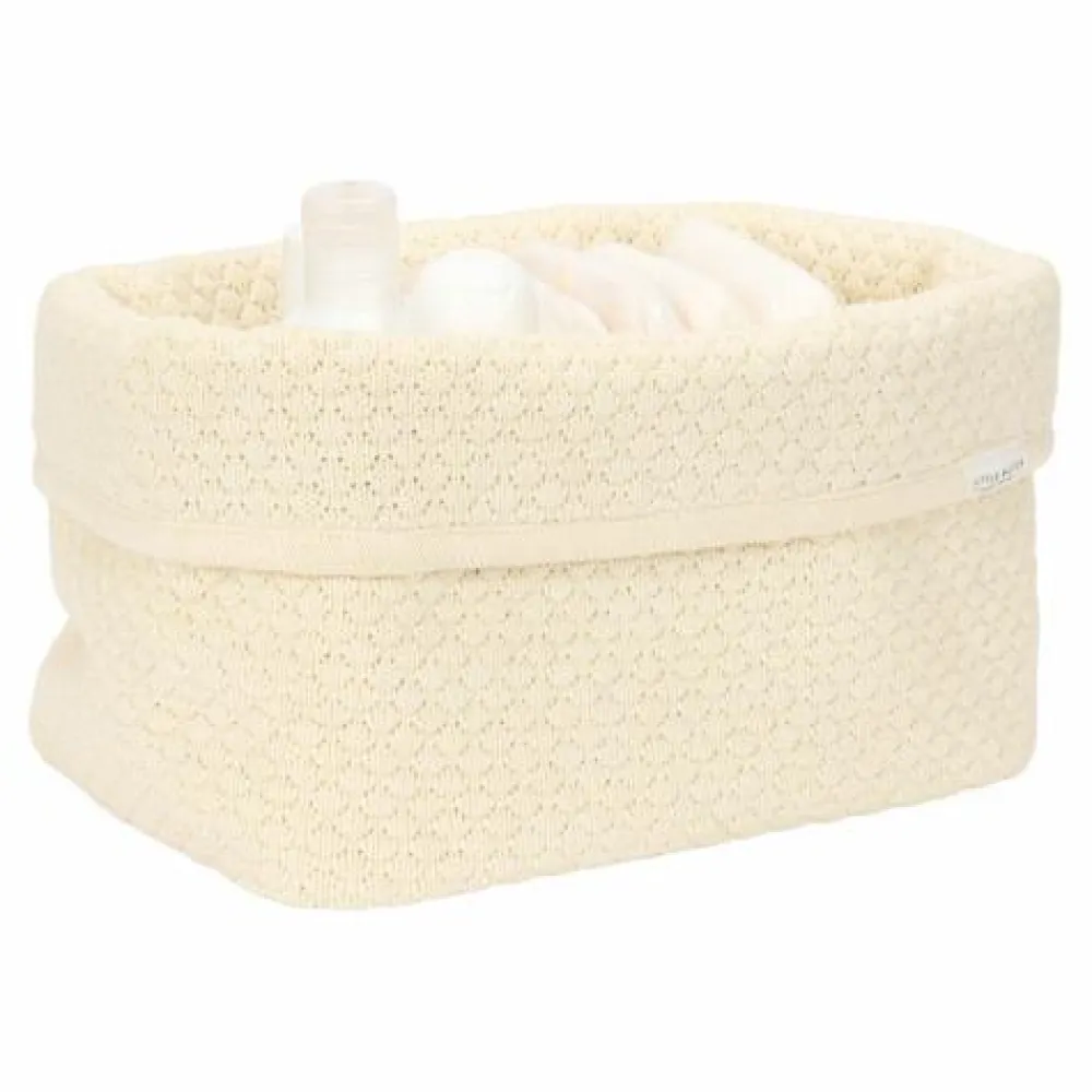 Met dit commodemandje blijft de commode netjes opgeruimd en georganiseerd. Gemaakt van gebreid 100% biologisch katoen met verstevigde zijkanten biedt het voldoende ruimte voor al je dagelijkse benodigdheden voor de verzorging van je kleintje zoals luiers, tubes en flesjes. Door de omslagrand kun je de mand op twee hoogtes gebruiken. Het gestikte patroon gecombineerd met de tijdloze kleur Pure Soft White, geeft de elke kamer een heldere en serene uitstraling. Verkrijgbaar in twee maten.
