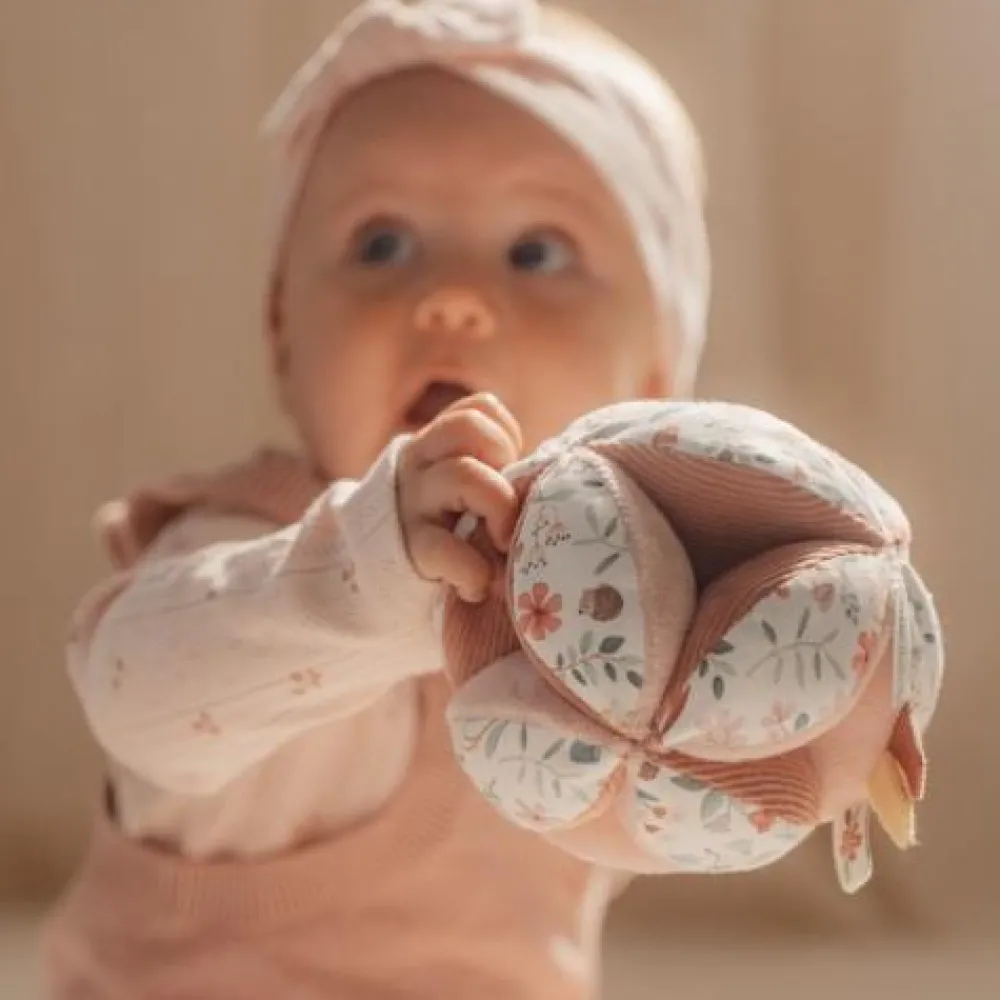 Probeer de bal maar te pakken! Deze grijpbal met zijn interessante vorm zorgt voor een geweldige uitdaging voor je kleintje. De vlakken van verschillende texturen en patronen nodigen uit om te grijpen en te verkennen. De bal is gemakkelijk op te pakken voor kleine handjes en het vrolijke geluid van het rammelende belletje beloont je baby’s inspanning. Op het mooie decor van Fairy Garden zullen de makkelijk vast te pakken verschillende leuke labels de zintuigen prikkelen, grip ontwikkelen en je baby flink bezig houden in de box.