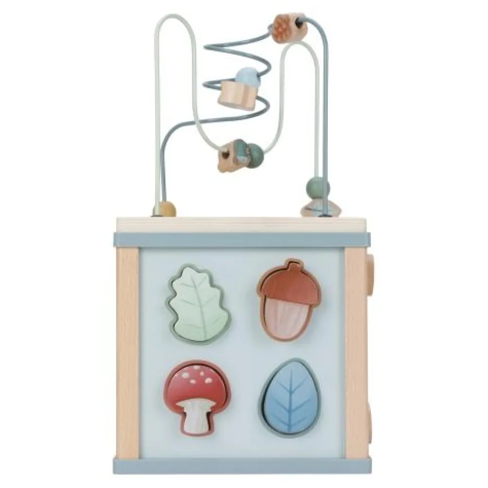 Ga op avontuur en verken alle zijden van deze kubus vol activiteiten. Elke zijde bevat betoverende elementen uit het Forest Friends thema en biedt leuke educatieve activiteiten, zoals een vormenstoof, draaiende tandwielen, puzzels en bovenop een leuke kralenspiraal. Bij elke activiteit ontwikkelen kinderen hun fijne motoriek en worden ze aangemoedigd om hun creativiteit te gebruiken. Deze activiteitenkubus wekt niet alleen nieuwsgierigheid bij kinderen op, maar zorgt ook voor urenlang ontdekkings- en speelplezier.