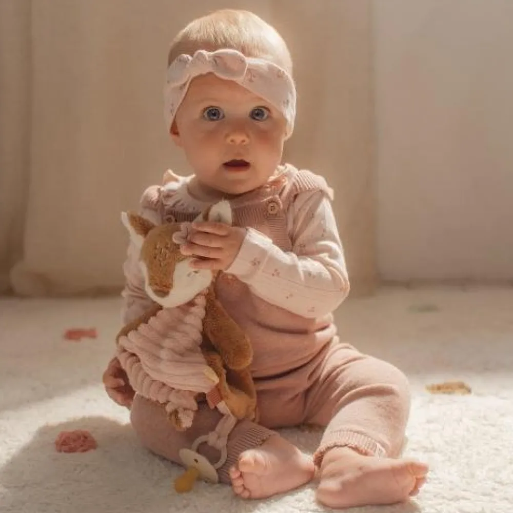 Een knuffel voor geborgenheid! Dit knuffelvriendje staat klaar om lekker te knuffelen en je te troosten, waar en wanneer je maar wilt. Het vriendelijke hertje zal je geruststellen met haar magische zachtheid en geeft je een warme omhelzing wanneer je een vriendje nodig hebt. Het lichaam van het hertje is een heerlijke zachte doek met speelse labels, een Fairy Garden borduursel en twee knopen die kleine handjes makkelijk vast kunnen pakken. Met de handige lus kun je er eenvoudig een speentje aan vast te maken, zodat het altijd binnen handbereik is.