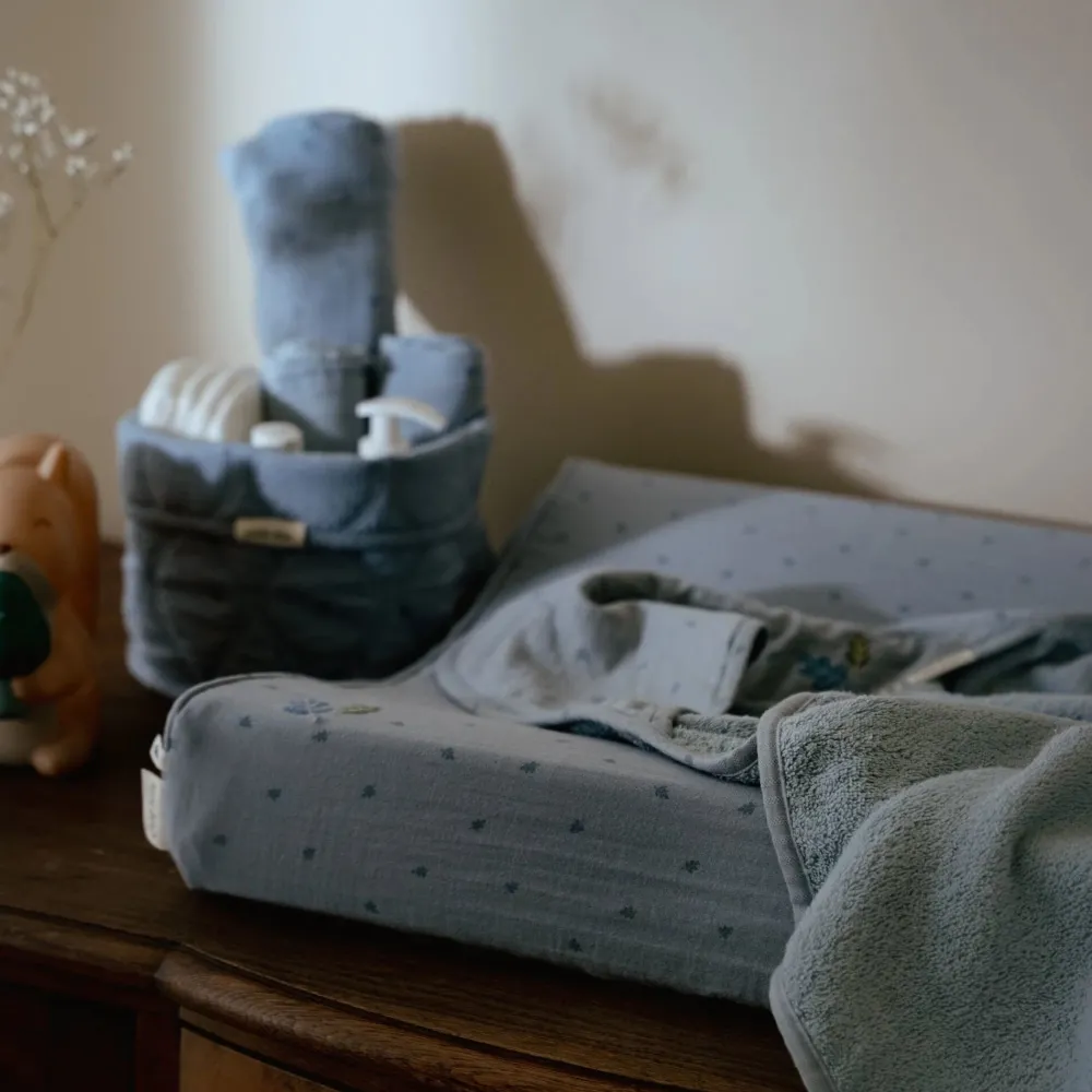Op zoek naar een stijlvolle en praktische oplossing voor de commode? Met dit handige opbergmandje van Little Dutch houd je luiers, tubes en flesjes netjes georganiseerd en altijd binnen handbereik! Het mandje is stevig en prachtig afgewerkt, een echte aanwinst voor de kinderkamer. De zachte Pure Denim Blue kleur en subtiele print voegen een rustgevende touch toe, en het mandje is ook nog eens omkeerbaar voor variatie. Deze must-have is verkrijgbaar in verschillende formaten, vormen en kleuren.