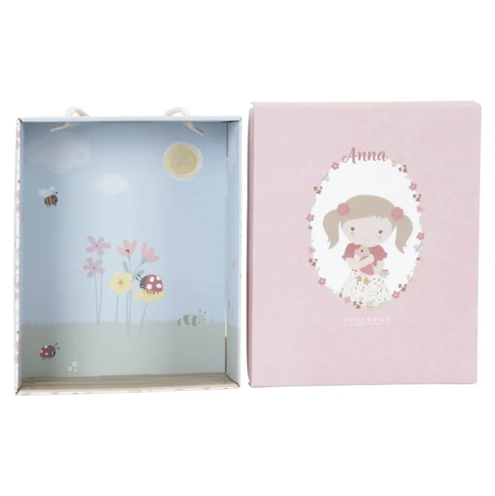 Dit is de lieve Anna. Deze pluche knuffelpop in haar schattige rokje kan niet wachten om geknuffeld te worden. Ze vindt het heerlijk om rond te huppelen in tuinen vol bloemen en vlinders. Samen met haar vogeltje wordt Anna je nieuwe beste vriendin. Ze zal er altijd voor je zijn als je wilt spelen of een dikke knuffel nodig hebt. Wat wordt jullie eerste uitje samen? Misschien een wandeling door de tuin met de bijpassende houten poppenwagen!? Anna is zacht en knuffelig, 35 cm lang en is verpakt in een mooie opbergdoos.
