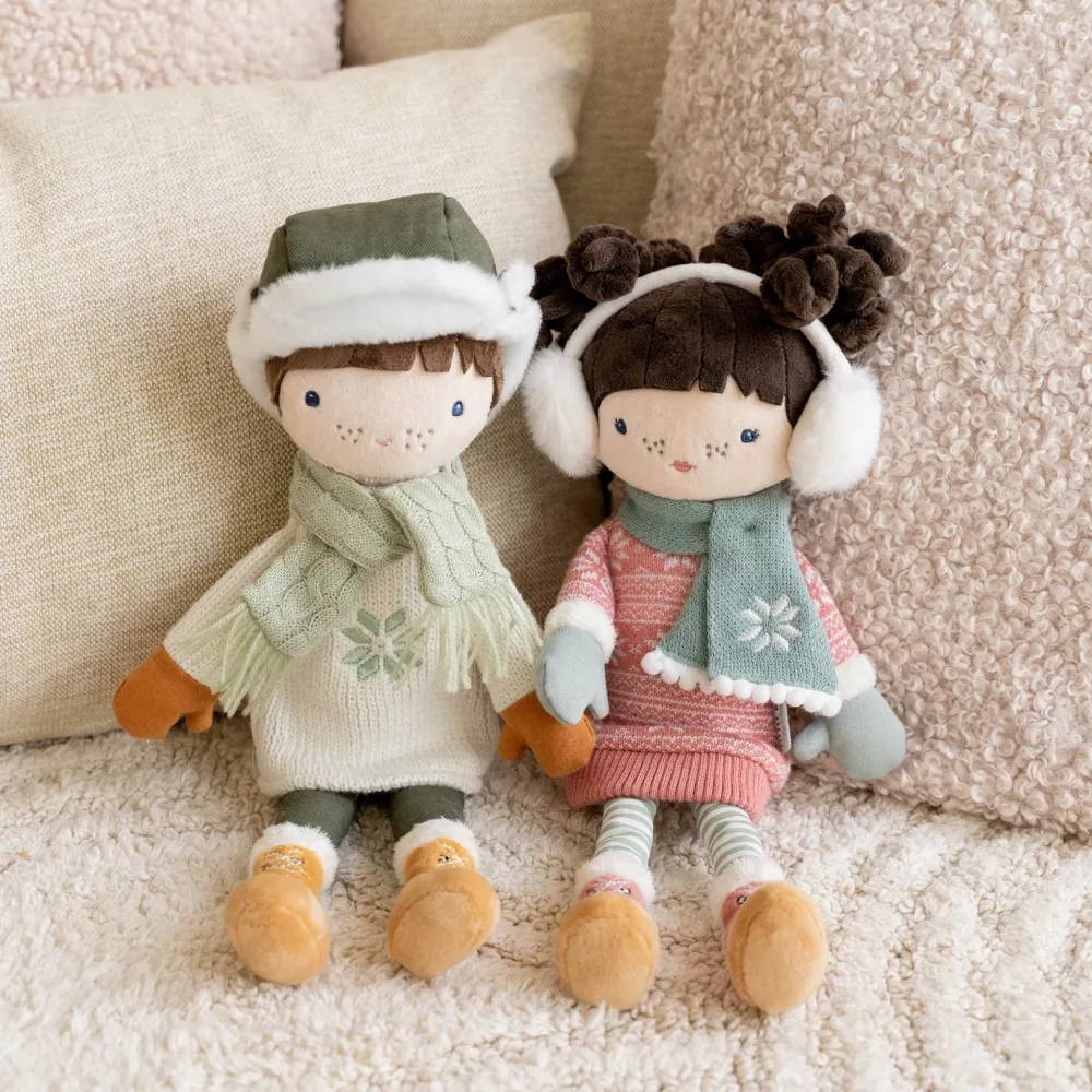 Dit is de coole Sam. Deze pluche knuffelpop met zijn sneeuwmuts en winterlaarzen kan niet wachten om geknuffeld te worden. Hij is warm aangekleed en klaar om buiten in de kou te spelen. Hij kan niet wachten tot er sneeuw valt en hij sneeuwballen kan gooien. Sam wordt je nieuwe beste vriend. Hij zal er altijd zijn als je wilt spelen of een dikke knuffel nodig hebt. Doe je sjaal om en je wanten aan, en stap samen op de slee voor een ritje door winterwonderland. Sam is zacht, knuffelig en 35 cm lang.