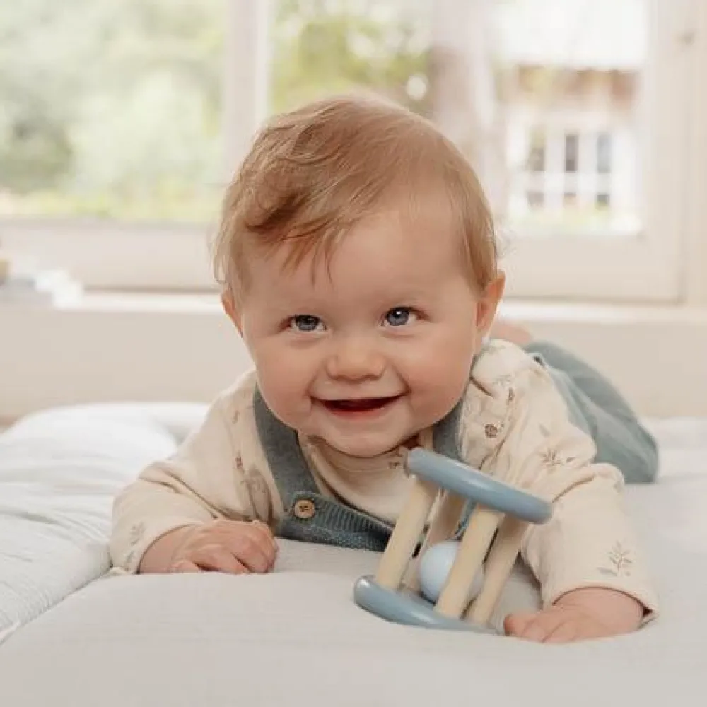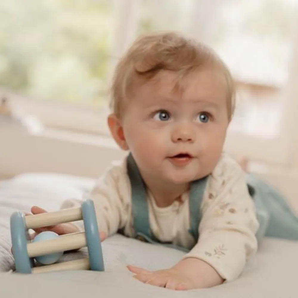 Rol, rammel en schud met plezier! Deze schattige houten rammelaar rolt en rolt, en maakt daarbij een vrolijk geluid. De blauwe zijkanten zijn versierd met een illustratie uit de Forest Friends-collectie, van een stel magische paddenstoelen genesteld in het hart van een betoverd bos. Ontworpen om de hand-oogcoördinatie te bevorderen, heeft deze rammelaar het perfecte formaat voor kleine handjes om vast te pakken en te verkennen.