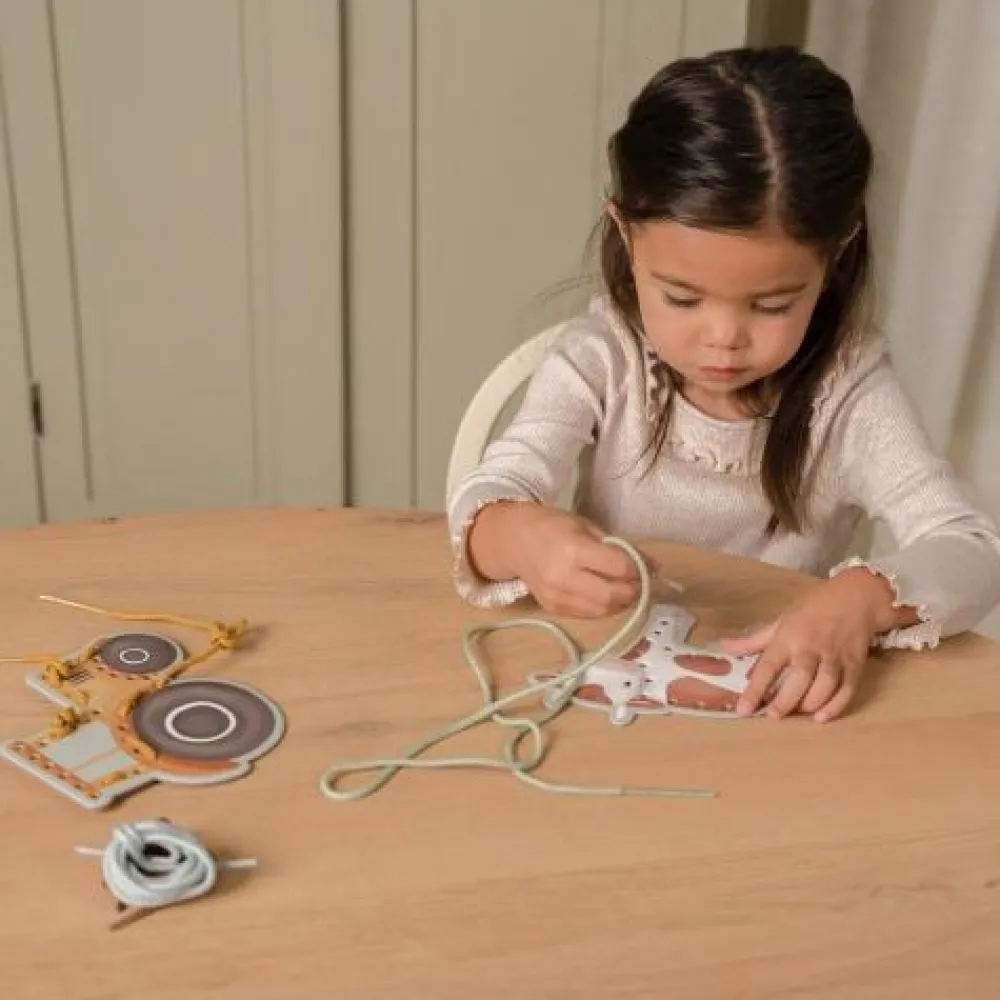 Kom, kies een kaart en begin te rijgen! Volg het patroon van de leuke figuren. Haal de veter door de kleine gaatjes om wat details toe te voegen aan de boerderij, of aan de tractor. Rijg langs de kip, de koe en het schaap. Een leuke en vermakelijke activiteit. Deze set rijgkaarten wordt geleverd met twee veters en 5 kartonnen kaarten voorzien van de prachtige illustraties van de Little Farm collectie. Peuters zullen het geweldig vinden om hun fijne motoriek te oefenen door de veter met veel precisie door de kleine gaatjes van de kaarten te rijgen. Uren speelplezier gegarandeerd!
