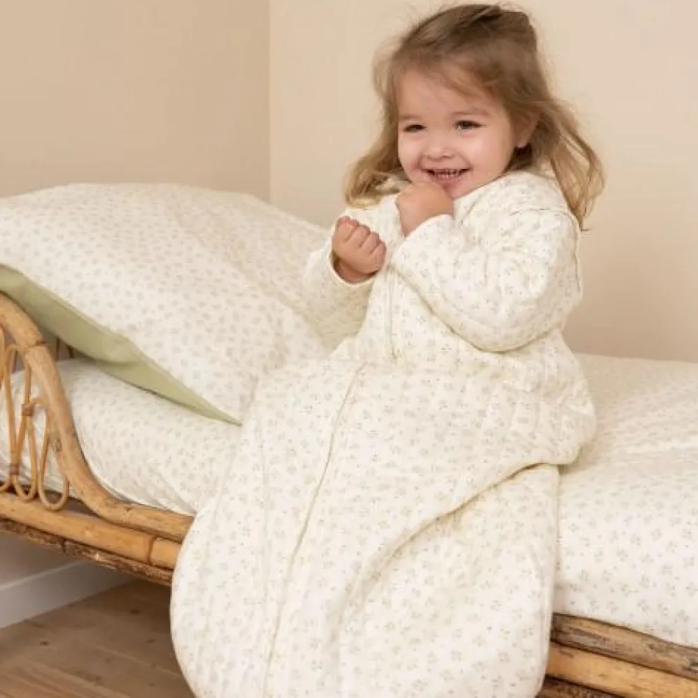 Met deze mooie warme slaapzak is je kleintje klaar voor fijne en comfortabele slaapjes. De zachte stof van 100% biologisch katoen en de afneembare lange mouwen maken deze slaapzak perfect voor het winterseizoen. Omhuld in het Blueberry Leaves-ontwerp, zal je kleintje wegdromen naar tuin vol met blaadjes en blauwe bessen. Dankzij de afritsbare mouwen pas je de slaapzak makkelijk aan het seizoen aan. De rits van de slaapzak sluit naar beneden en is zowel aan de binnen- als buitenkant bedekt zodat je kleintje veilig en beschermd blijft. De slaapzak is Oeko-Tex gecertificeerd en verkrijgbaar in 70 cm, 90 cm en 110 cm.