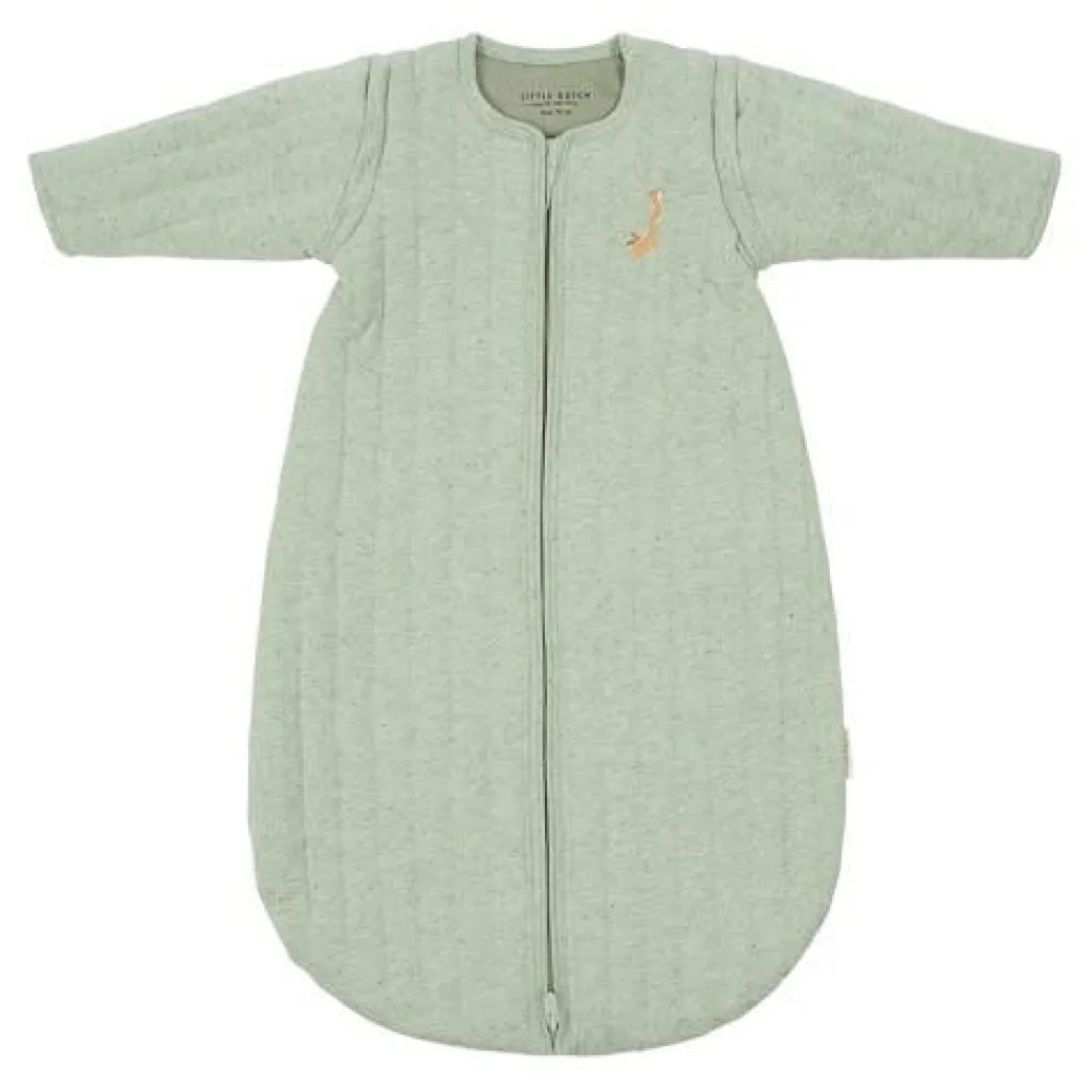 Met deze mooie warme slaapzak is je kleintje klaar voor fijne en comfortabele slaapjes. Het jersey biologisch katoen voelt fijn en zacht en met de afritsbare lange mouwen is het perfect om je kleintje knus en warm te houden tijdens de wintermaanden. De groene grijze Sage basis straalt een gevoel van natuurlijke harmonie uit en is versier met een kleine borduursel van een schattige eekhoorn. De rits van de slaapzak sluit naar beneden en is zowel aan de binnen- als buitenkant bedekt zodat je kleintje veilig en beschermd blijft. De slaapzak is Oeko-Tex gecertificeerd en verkrijgbaar in 70 cm, 90 cm en 110 cm.