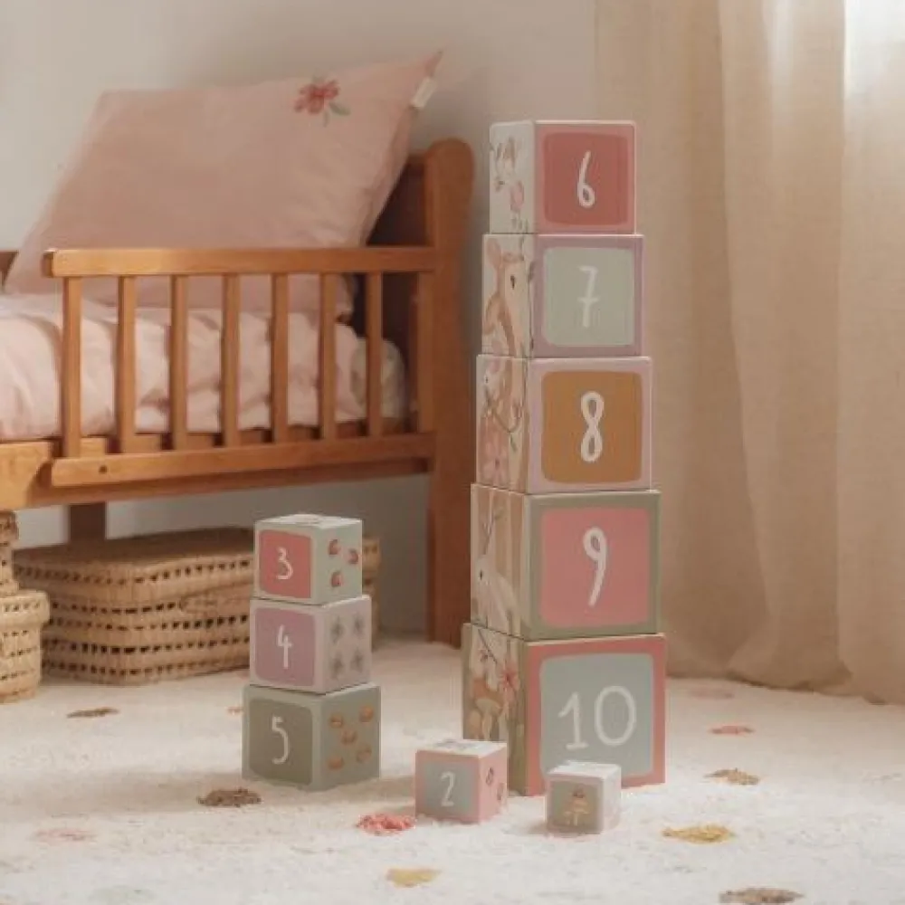 Stapel het ene blok op het andere en zie de magie van Fairy Garden groeien! Je kunt de blokken op elkaar stapelen om een hoge toren te maken of ze horizontaal op de grond leggen. Ontdek vier betoverende taferelen terwijl je bouwt. Creëer een weelderige bloementak die wordt bewoond door de mooiste boswezens. Sorteer ze op twee manieren door te tellen, of verzamel alle afbeeldingen uit de magische tuin. Kinderen leren spelenderwijs tot 10 te tellen met deze stapelblokken. De blokken zijn voorzien van prachtige illustraties uit de Fairy Garden-collectie, waaronder herten, konijntjes, egels, feeën, lieveheersbeestjes en vrolijke bloemen. Om ze gemakkelijk op te bergen, passen de kleine blokjes in de grotere. Gemaakt van stevig karton, kunnen de blokken tegen een stootje. Het kleinste blokje meet 5 cm en de grootste is 14 cm.