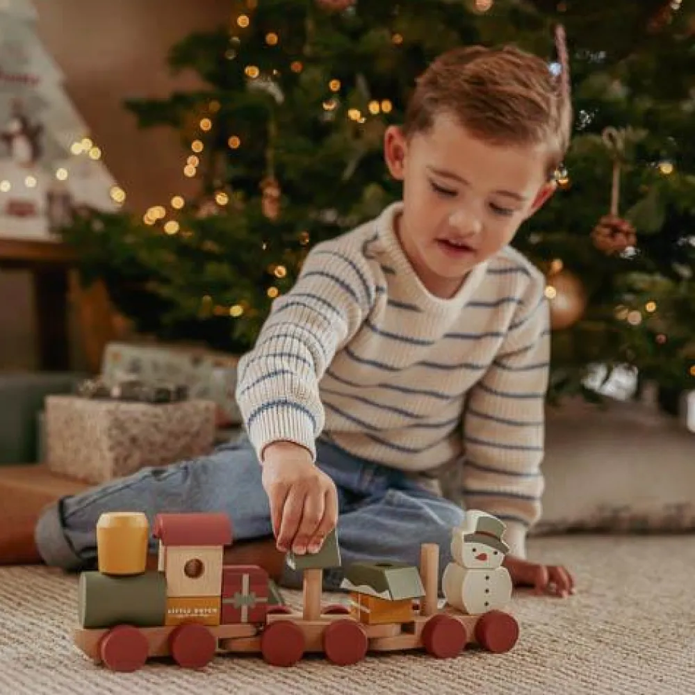 Kom aan boord van de kersttrein! Help je mee met het inladen van de cadeautjes? De sneeuwpop is al ingestapt. Bouw met behulp van de stapelblokken in verschillende vormen de kerstboom in de wagon. De stapeltrein stimuleert de hand-oogcoördinatie van je kleintje en ondersteunt de fijne motoriek. Het perfecte cadeau voor onder de boom, om mee te spelen tijdens de feestdagen.