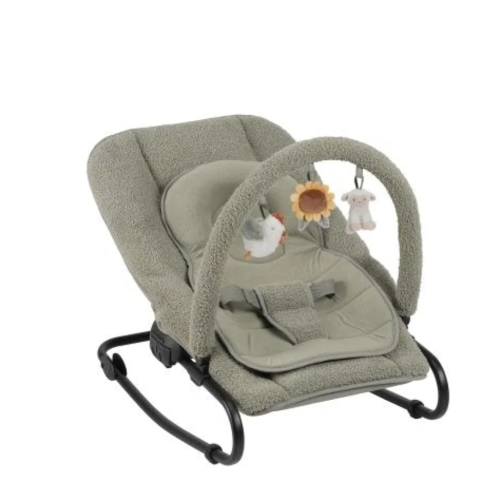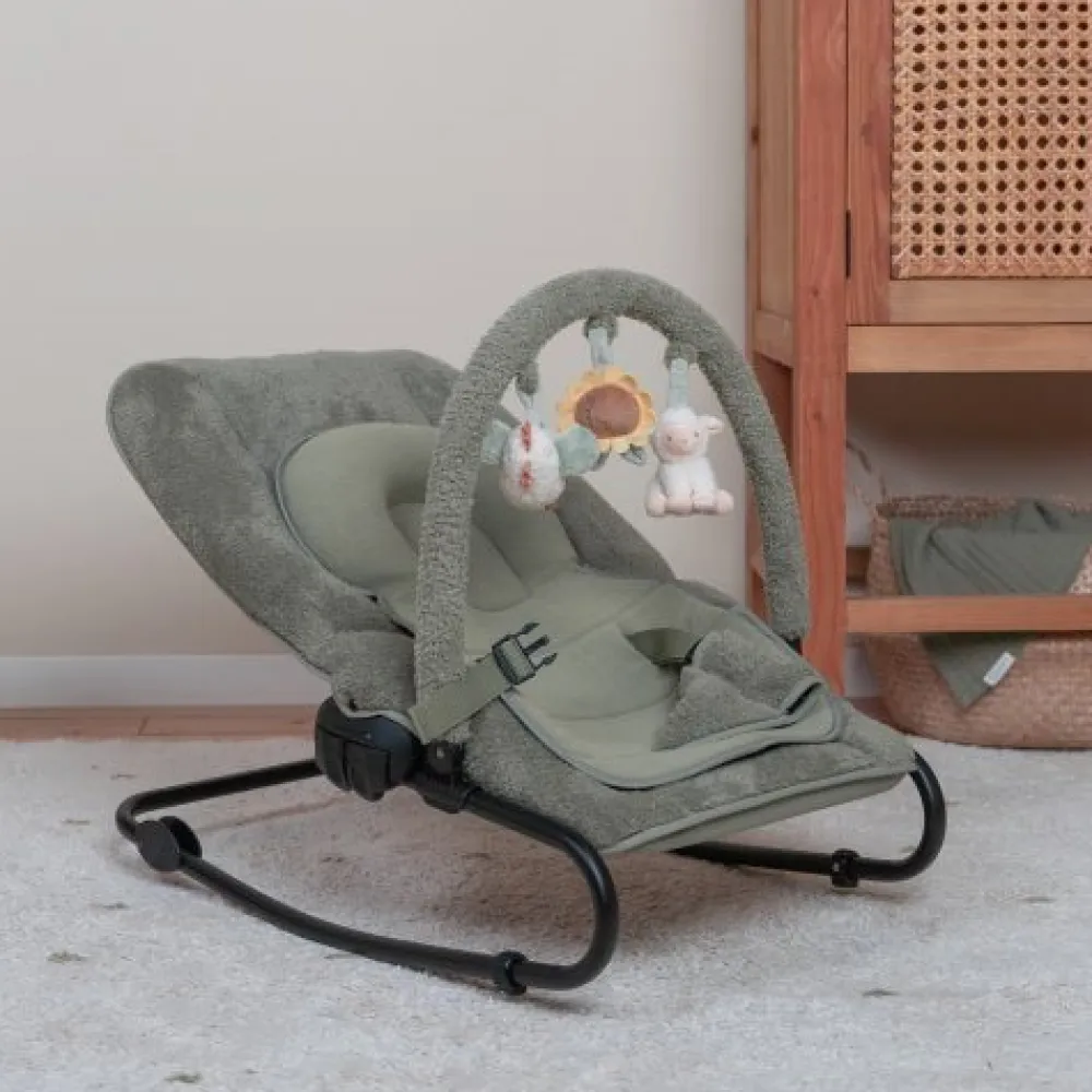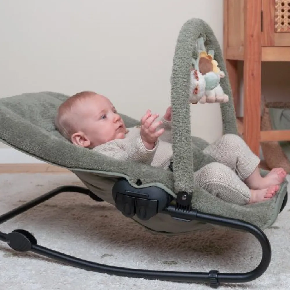 De wipstoel biedt je kindje een comfortabele plek om te ontspannen en te spelen. Je kindje zit veilig in de 3-punts veiligheidsgordel en kan urenlang spelen met de speeltjes aan de speelbeugel. Dankzij het schommelframe begint het wipstoeltje als te wiebelen bij een kleine beweging van je kindje. Zowel de rugleuning als de voetensteun zijn verstelbaar. De stoel wordt geleverd met een verkleinkussen en een verstelbare speelboog. Aan de speelboog zitten een kip, een zonnebloem en een zittend schaapje. De rugleuning is verstelbaar in diverse standen en het stoeltje kan zowel in een schommelstand als een vaste stand gebruikt worden. De wipstoel is geschikt voor je kindje vanaf de geboorte tot 6 maanden (circa 9 kg) kan je kindje comfortabel in het stoeltje liggen.
