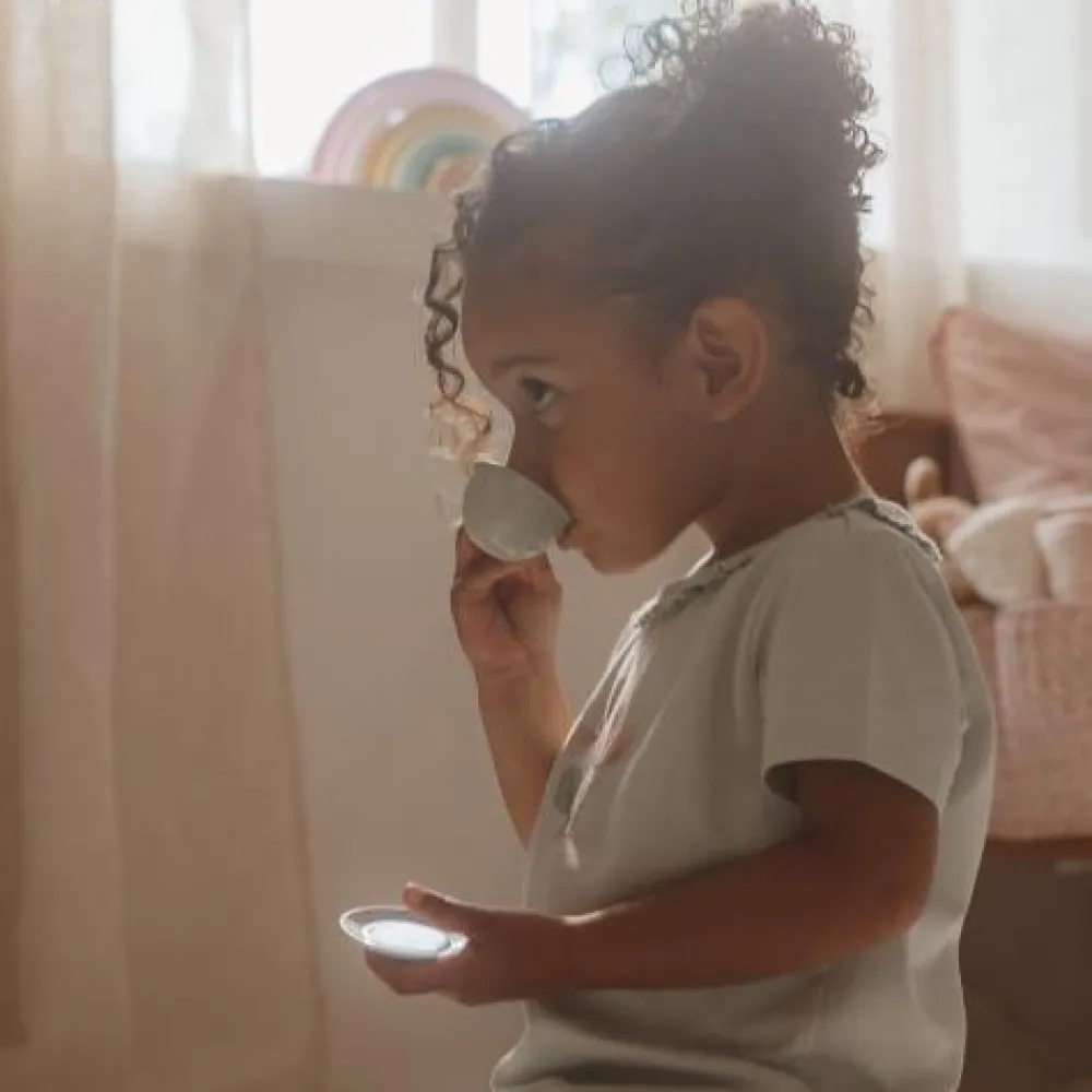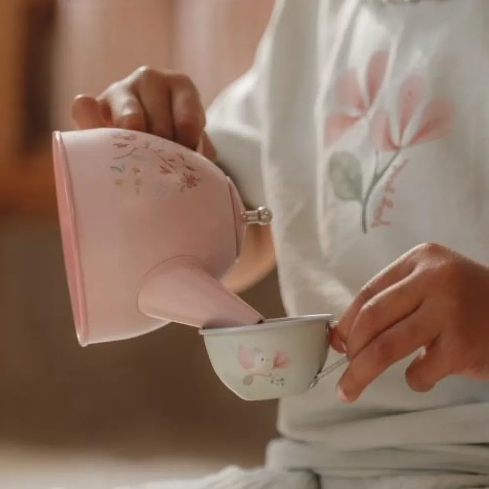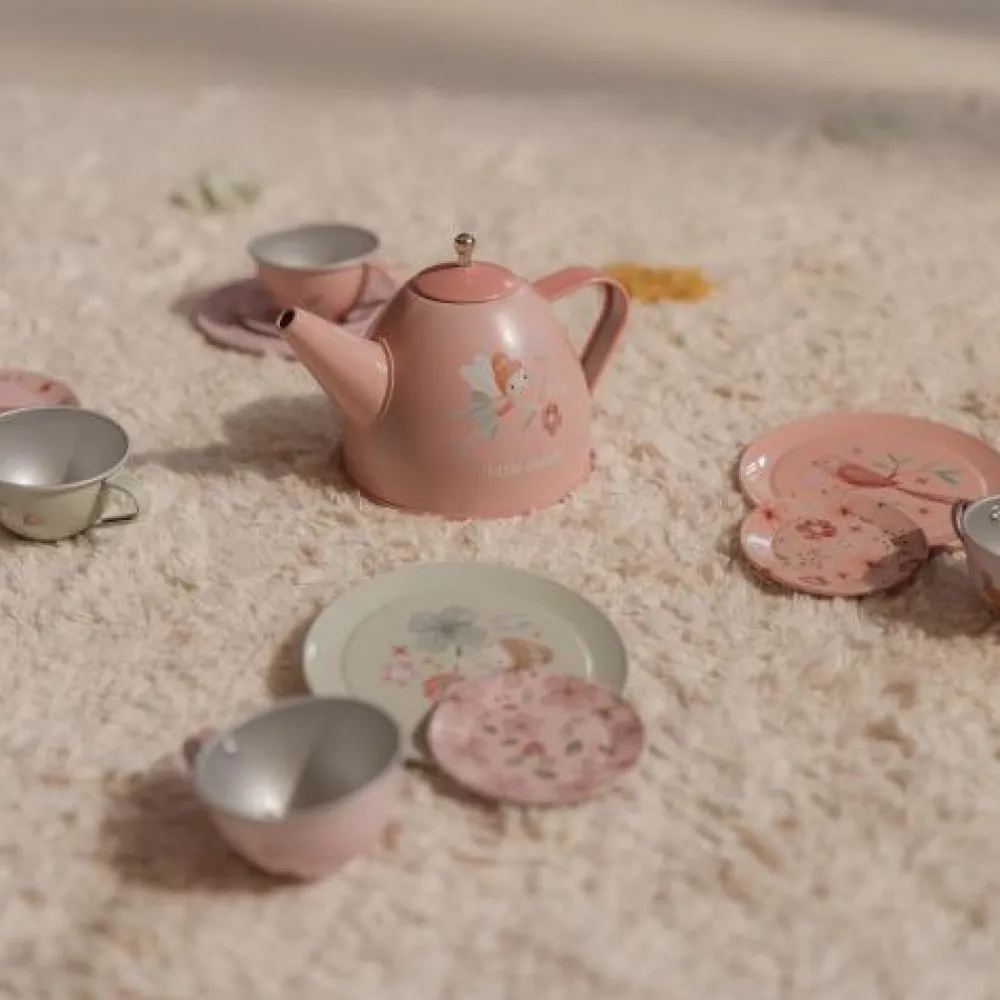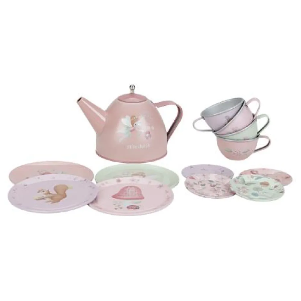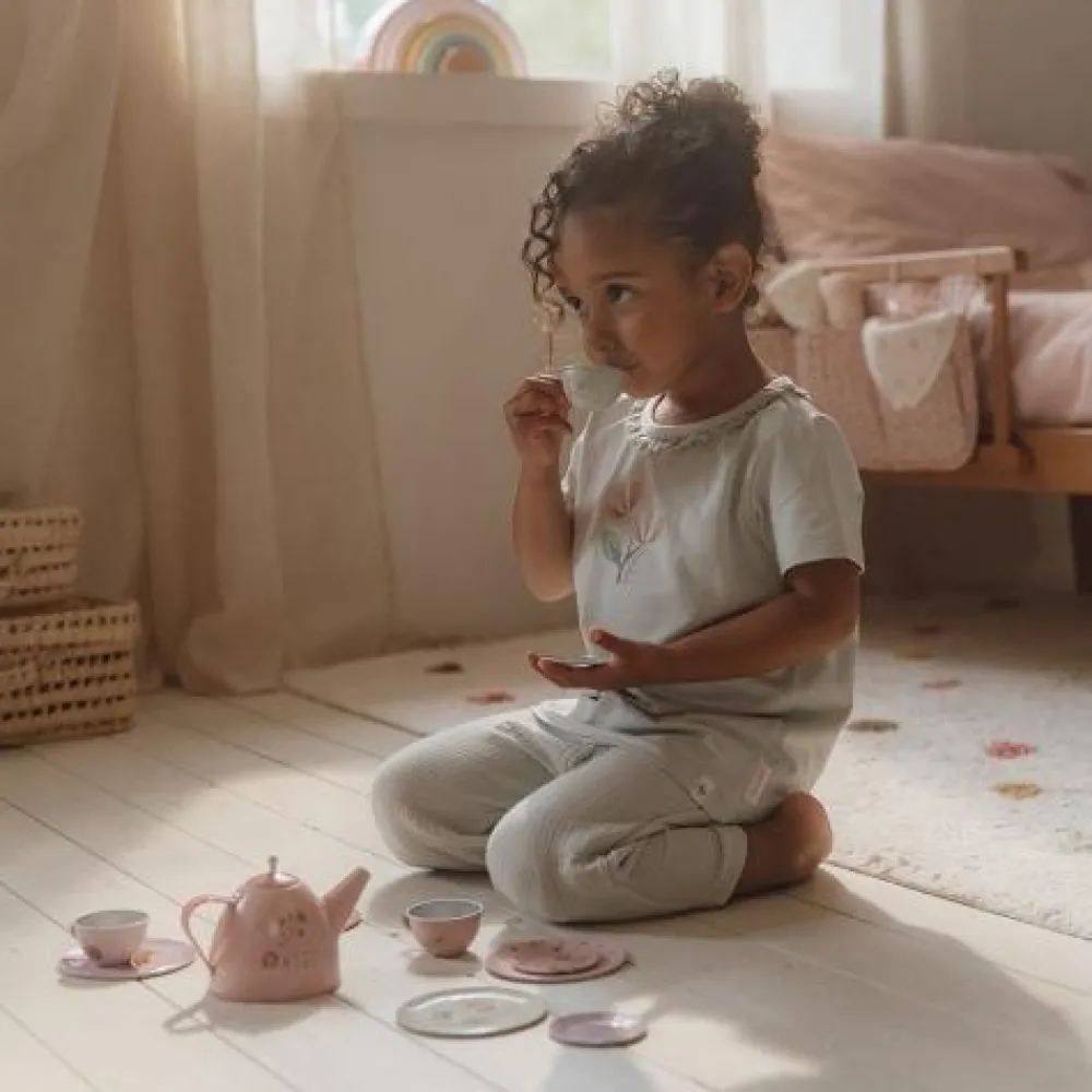 Zullen we samen theedrinken? Met dit schattige tinnen theeservies speelt je kind een geweldig rollenspel. Dit Fairy Garden theesetje prikkelt de fantasie van kinderen en stimuleert de fijne motoriek. De set bestaat uit vier kleine theekopjes, vier schoteltjes, vier gebaksbordjes en een theepot met deksel. Let op: berg het product na gebruik droog op. Wordt geleverd in windowbox. Geschikt voor kinderen vanaf 36 maanden.