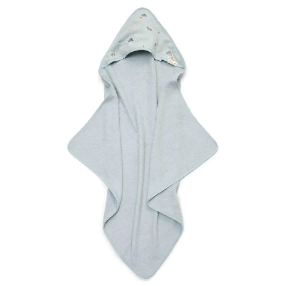Wikkel je kleintje in warmte en zachtheid met deze badcape. Gemaakt van 100% biologisch katoenen badstof voor een heerlijk zacht en knus gevoel. Ontworpen voor zowel praktisch gebruik als charme, zorgt de zachte capuchon voor geborgenheid en comfort na het badderen. De handdoek heeft een mooie lichtblauw Blue kleur en de capuchon is versierd met schattige geborduurde paddenstoelen uit de Forest Friends-collectie.