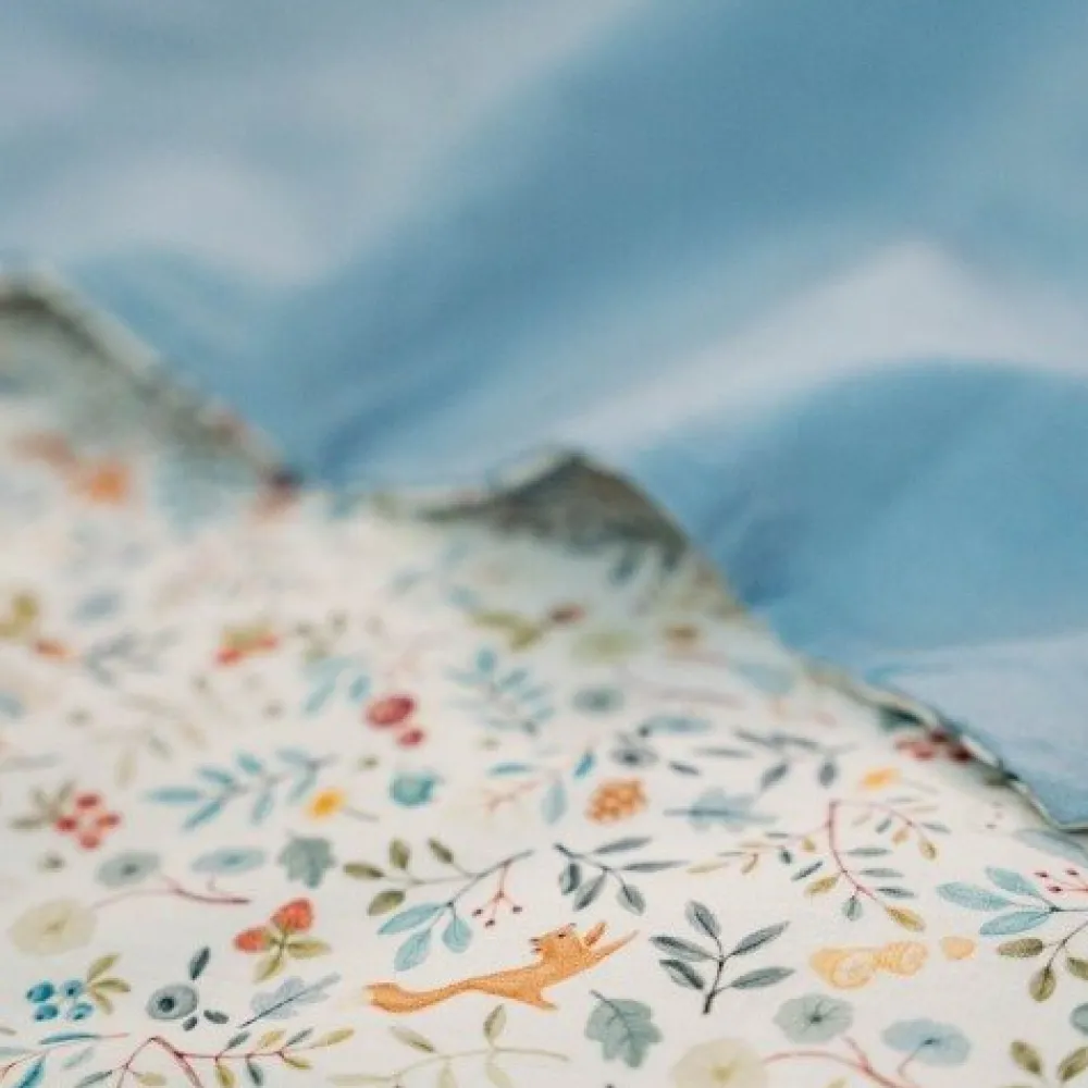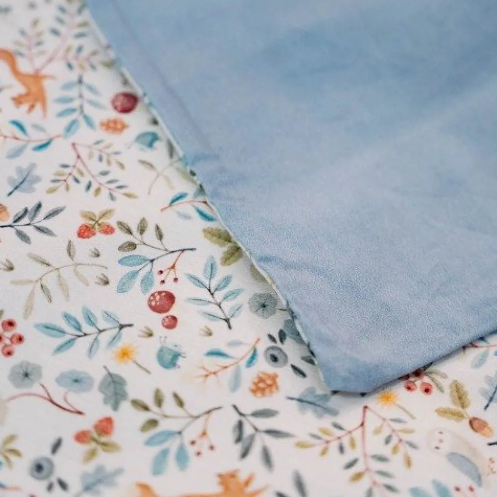 Voeg een vleugje design toe aan de kinderkamer met een prachtig opgemaakt bed. Met dit dekbedovertrek voor een peuterbed zal je kleintje heerlijk wegdromen naar avontuur. Het dessin Forest Wonders inspireert de mooiste dromen over een avontuurlijk bos met de schattigste dieren zoals eekhoorns, uilen, egels en vogels. Het zachte dekbedovertrek is gemaakt van 100% biologisch katoen met het Forest Wonders dessin aan de ene kant en een effen Denim Blue kleur aan de andere kant. Zowel de kussensloop als het dekbedovertrek zijn comfortabel, mooi afgewerkt en hebben een goed ademend vermogen. Het formaat van het dekbedovertrek is 120 x 150 cm en de kussensloop is 40 x 60 cm.