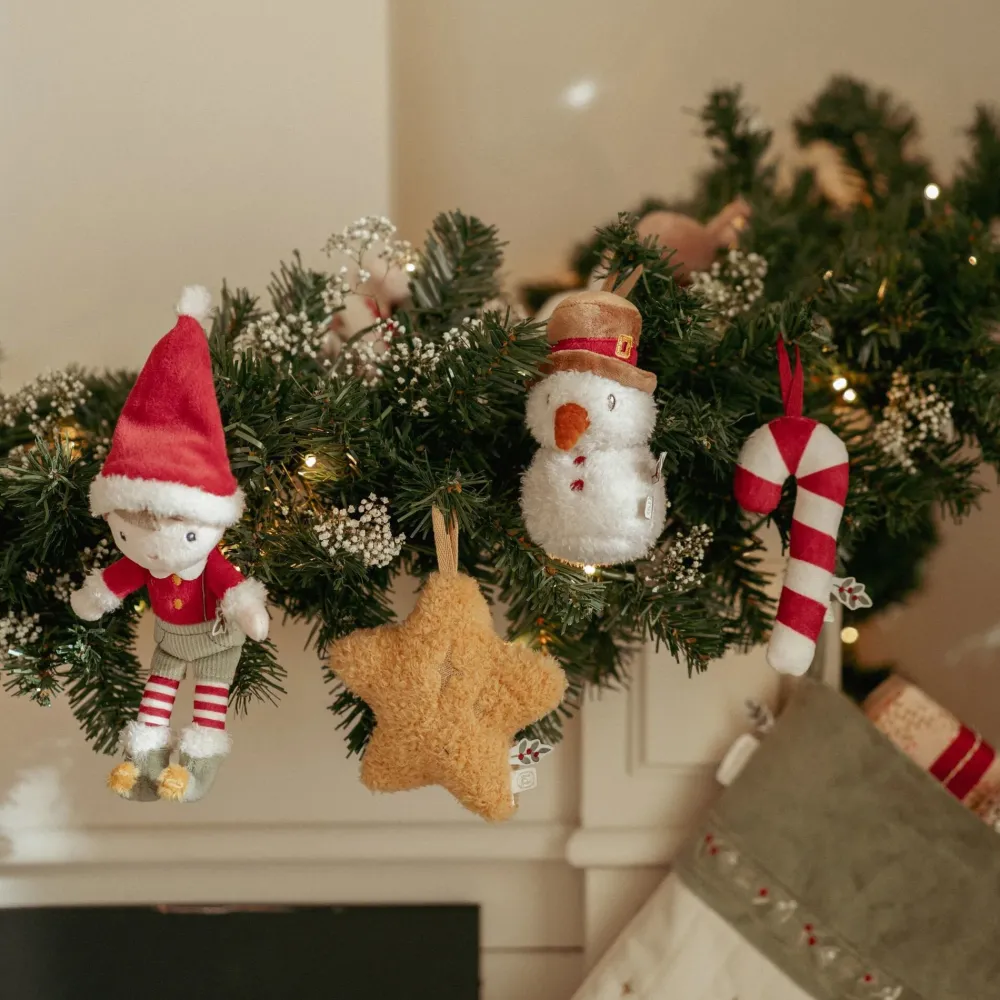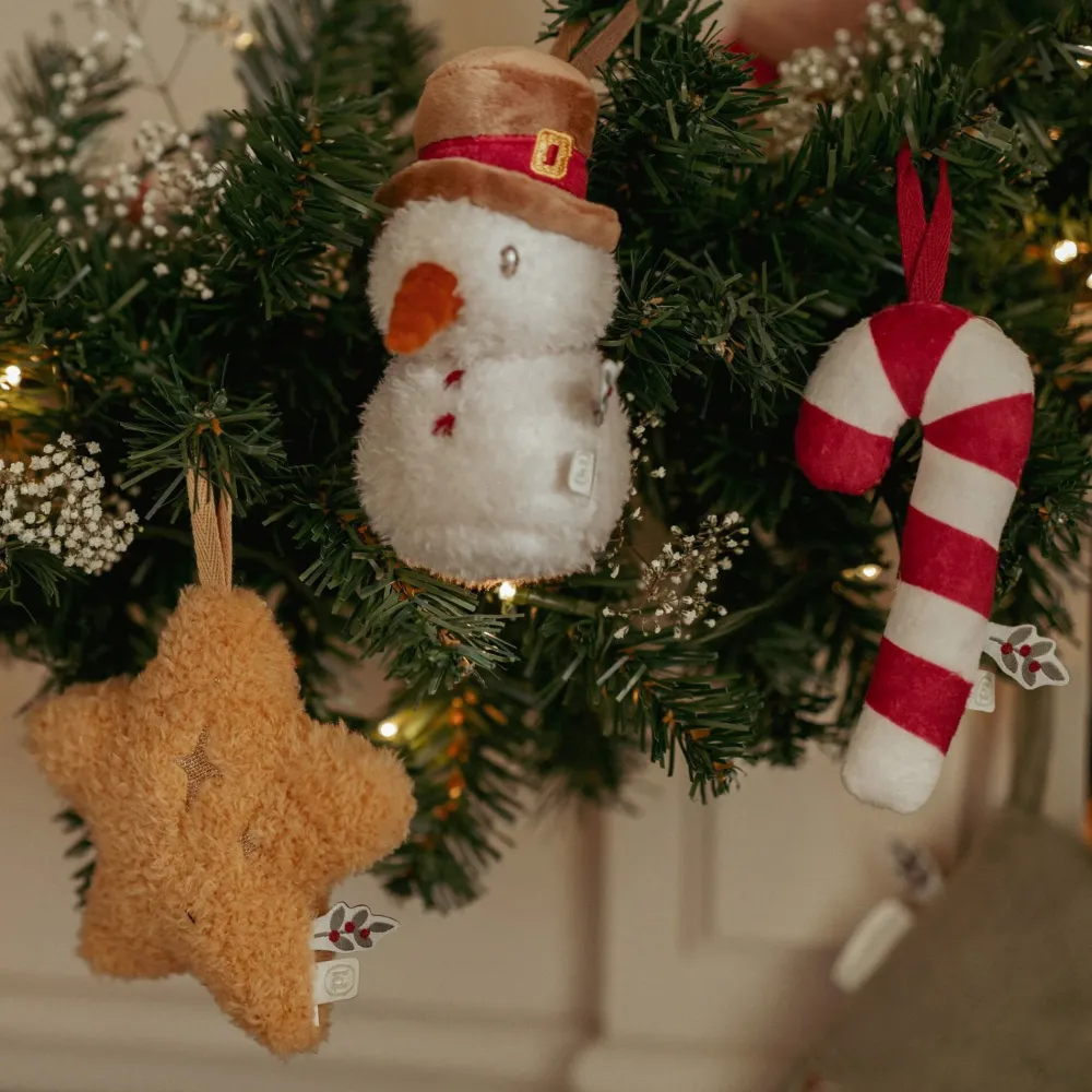 Breng je kerstboom tot leven met deze set van 4 pluche kersthangers. In de doos vind je kerstpop Jim, een vrolijke sneeuwpop, een feestelijke zuurstok en een stralende ster – allemaal even zacht en sfeervol.