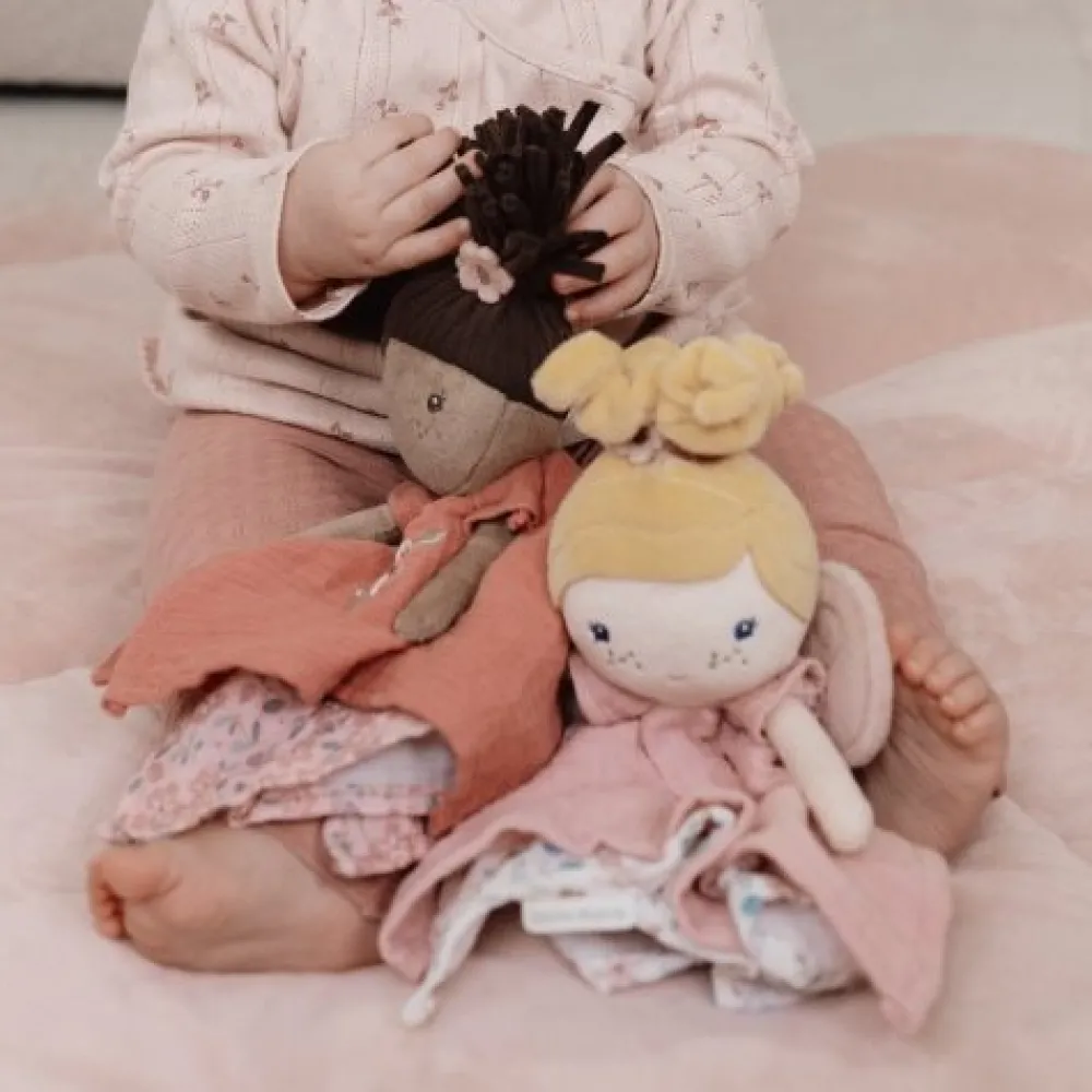 Laat je kleintje wegdromen in een wereld vol vrolijke bloemen met dit prachtige feeën knuffeldoekje. Haar zachte vleugels, geborduurde details, donkerbruine staartjes en oudroze jurkje maken haar perfect voor kleine handjes om vast te pakken en te knuffelen. Deze fee stimuleert de zintuigen en biedt comfort en geborgenheid. Ideaal voor dutjes of onderweg! Tip: zo’n uniek knuffeldoekje is ook een geweldig kraamcadeau.