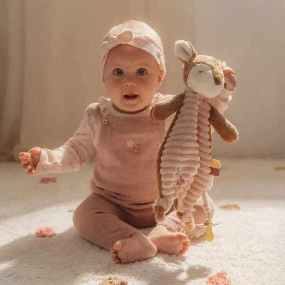 Een knuffel voor geborgenheid! Dit knuffelvriendje staat klaar om lekker te knuffelen en je te troosten, waar en wanneer je maar wilt. Het vriendelijke hertje zal je geruststellen met haar magische zachtheid en geeft je een warme omhelzing wanneer je een vriendje nodig hebt. Het lichaam van het hertje is een heerlijke zachte doek met speelse labels, een Fairy Garden borduursel en twee knopen die kleine handjes makkelijk vast kunnen pakken. Met de handige lus kun je er eenvoudig een speentje aan vast te maken, zodat het altijd binnen handbereik is.