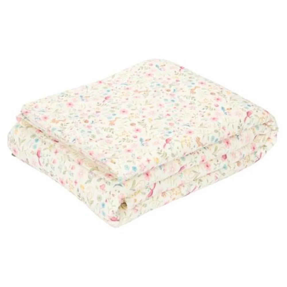 Houd je kleintje knus en warm tijdens het slapen met deze mooie ledikantdeken. Met aan de ene kant een zachte interlock stof en aan de andere kant een heerlijke fleece stof is de deken ook te gebruiken als omslagdoek, sprei of speelkleed. Het Fairy Wonders dessin zal de zoetste dromen inspireren van een tuin vol fleurige bloemen en spelende diertjes. Gemaakt van 100% biologisch katoen met een TOG-waarde van 2.2 waardoor het zowel ademend als isolerend is. Voor extra gemak kun je de deken gewoon wassen in de wasmachine op 30 graden.