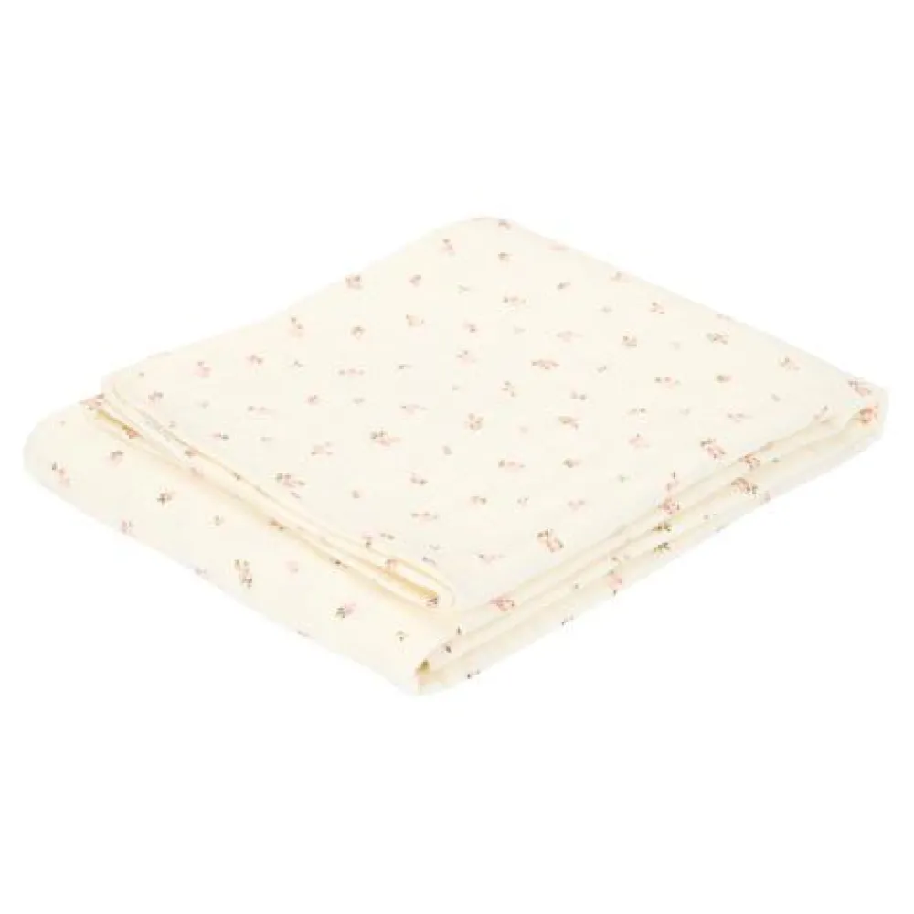 Dek je kindje toe met de warmte en geborgenheid van deze 4-laagse hydrofiele ledikantdeken voor de zoetste dromen. Het voorgewassen en gekreukelde 100% biologische katoen waar het dekentje van is gemaakt, zorgt voor de fijnste zachtheid, vochtopname, ademend vermogen en comfort, waardoor het ideaal is voor het zomerseizoen. Het is ook fijn te gebruiken als zacht oppervlak om je kleintje te verzorgen, zowel thuis als onderweg. De schattige kleine bloemetjes die dansen over de gebroken witte ondergrond van het Fairy Blossom-dessin verbeelden het avontuur van een tuin vol feetjes, en brengen warmte en comfort naar de dromen van je kleintje.