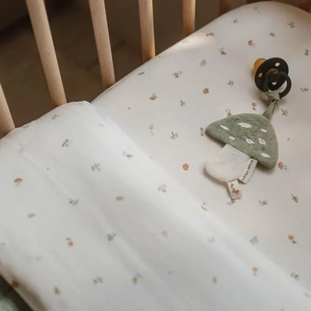 Een prachtig opgemaakt bedje zorgt gelijk voor een gezellige sfeer in de kinderkamer. Je kleintje zal heerlijk slapen onder dit zachte ledikantlaken, gemaakt van 100% biologisch katoen. De zoom van het laken is versierd met paddenstoeltjes, blaadjes, eikeltjes en dennenappels van het Forest Treasures dessin. Het ledikantlaken is samen met een Little Dutch ledikantdeken een perfecte combinatie.
