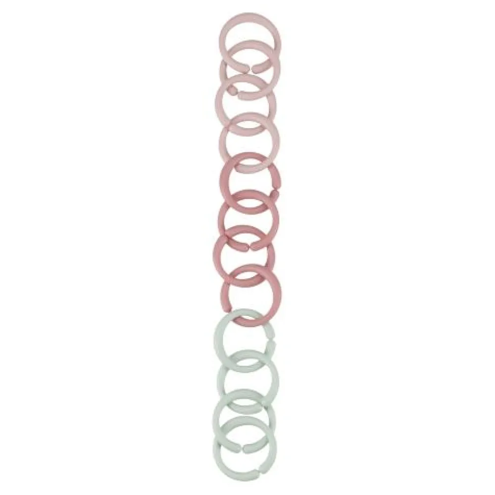 Deze multifunctionele speelgoedringen zijn je nieuwe favoriete hulpjes. Maak er een ketting van om bijvoorbeeld een buggyboekje vast te maken aan de kinderwagen. Er zijn vele manieren om deze handige Little Loops te gebruiken. Wees creatief en ervaar zelf hoe praktisch deze ringen zijn. De ringen hebben de basiskleuren van de Fairy Garden collectie en zijn gemaakt van Polypropyleen (PP) zonder gevaarlijke stoffen. Daardoor zijn ze veilig voor je kindje om mee te spelen. Ze zien er misschien simpel uit, maar je kindje zal zich zeker vermaken met de Little Loops. Er zitten 12 ringen in een verpakking.