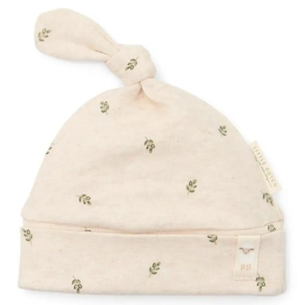 Comfort versierd met groene blaadjes! Dit schattige mutsje met omgeslagen rand is ontworpen om je kleintje warm en stijlvol te houden tijdens de eerste weken. Gemaakt van fijn biologisch katoen, omhult het het hoofdje met zachtheid, zodat je baby lekker warm blijft. De geribbelde textuur van de stof heeft een prachtig patroon met kleine groene blaadjes voor een speels accent uit de natuur. Combineer het met de items uit de Little Farm-collectie voor een extra schattige uitstraling. Verkrijgbaar in maten 0-3 maanden en 3-6 maanden, voor een perfecte pasvorm vanaf het allereerste begin.