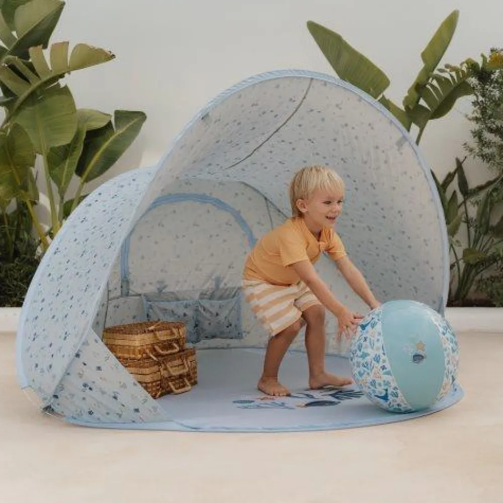 Deze strandtent met illustraties van de collectie Ocean Dreams Blue biedt bescherming tegen de felle zon en een frisse wind. Gebruik de stijlvolle speeltent op het strand, in de tuin of bij een picknick in het park. De pop-up tent voor kinderen is eenvoudig op te zetten en weer op te bergen in de opberghoes.