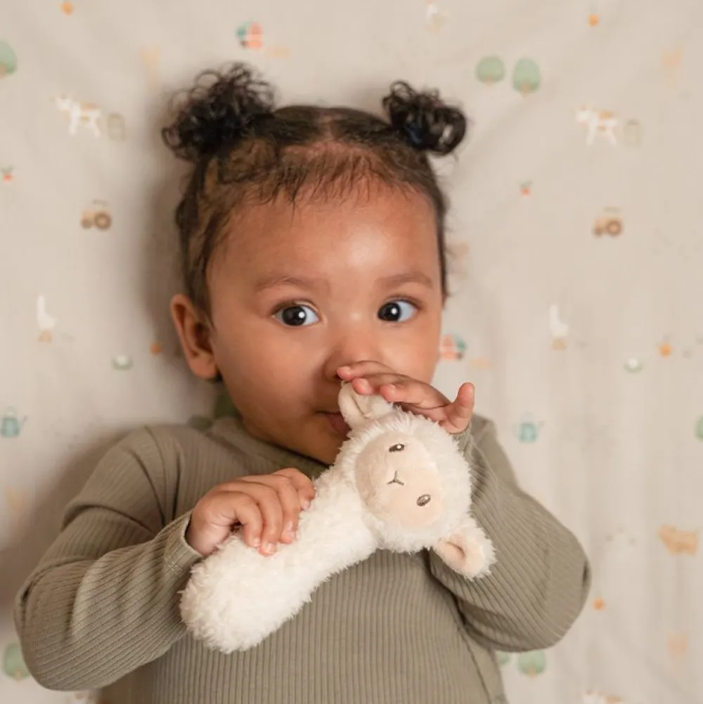 Het schaapje met zijn zachte vacht vindt het leuk om met baby’s te spelen. Dit zachte rammelspeeltje is het perfecte eerste speelgoed voor jouw kleintje om met plezier mee te spelen. Het is ontworpen om makkelijk beet te pakken met kleine handjes en het stimuleert de zintuigen wanneer en mee geschud wordt en het grappige geluid te horen is. Een schaterlach gegarandeerd!