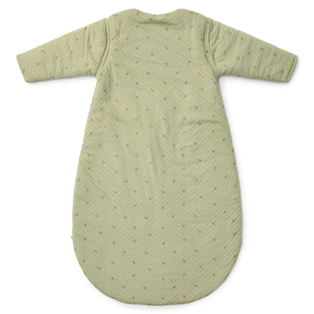 In deze warme winterslaapzak met afritsbare mouwtjes in de prachtige kleur Pure Sage met subtiele bladprint en een delicaat borduursel op de borst zal je kleintje stijlvol en comfortabel slapen. Gemaakt van luxe, zachte jersey jacquardstof, voelt het alsof je baby in een wolk gewikkeld is – maar dan zonder het gekriebel. Perfect voor een goede nachtrust, zowel voor je baby als voor jou! De slaapzak sluit naar beneden, zodat je baby hem niet gemakkelijk zelf kan openritsen. Er zit een flap over de rits om de gevoelige babyhuid te beschermen. De slaapzak is verkrijgbaar in 70 cm t/m 110 cm.