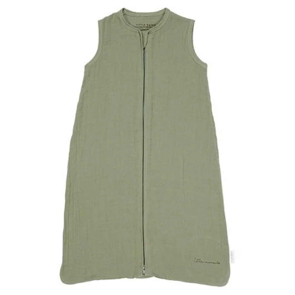 De Little Dutch slaapzak zomer hydrofiel Olive is gemaakt van biologisch katoen en Oeko-Tex gecertificeerd. De voorgewassen hydrofiele stof voelt extra zacht aan. Het biologisch katoen is zeer ademend. Deze slaapzak is ideaal voor de warme nachten tijdens de zomer. De slaapzak sluit naar beneden toe zodat je kindje de slaapzak niet makkelijk zelf open kan ritsen. Over de rits zit een flap, zodat de gevoelige babyhuid beschermd blijft. De slaapzak is verkrijgbaar in 70 cm, 90 cm en 110 cm.