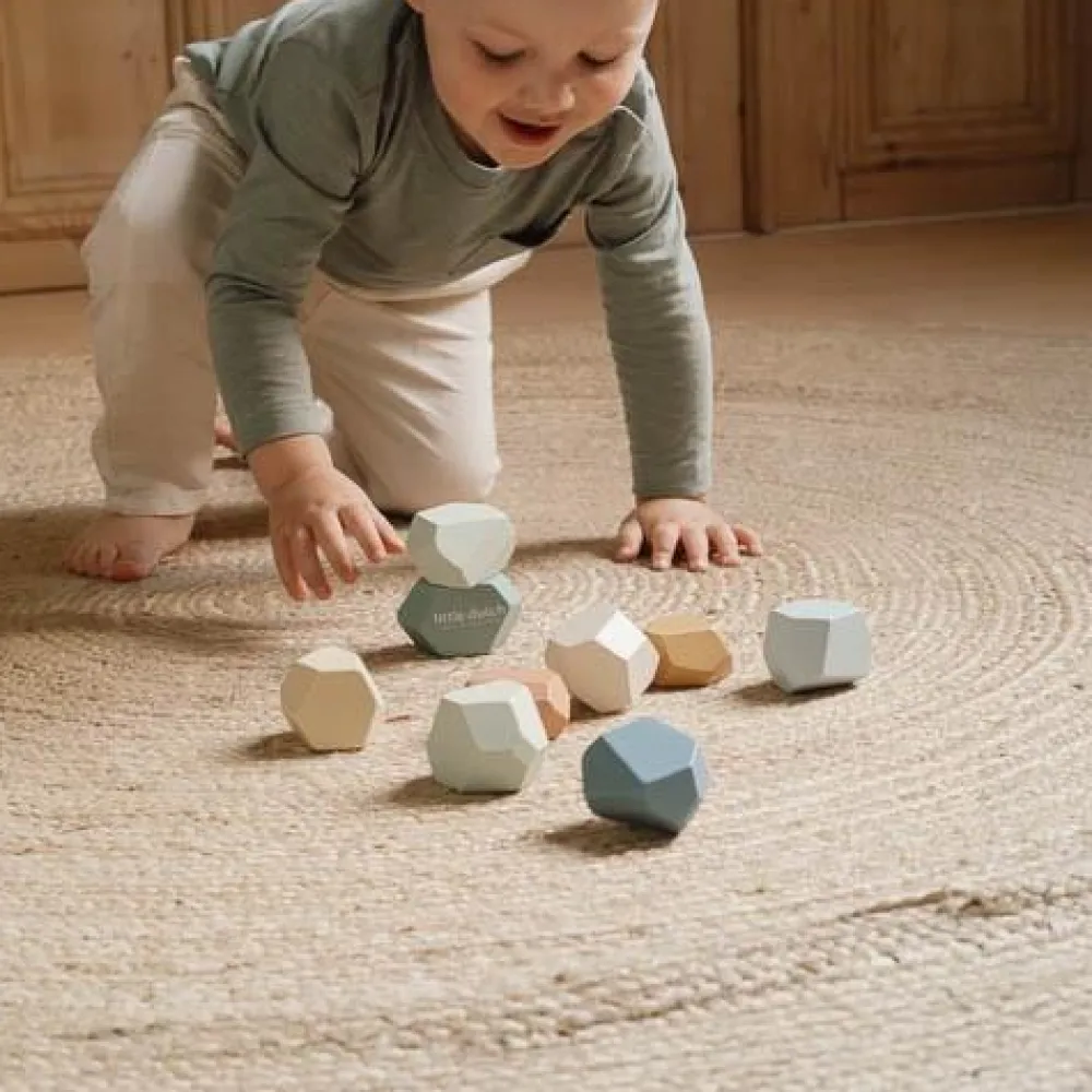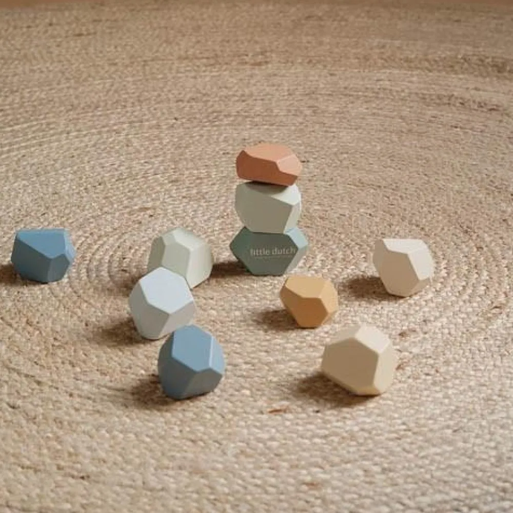 Stapelen, balanceren en bouwen! Begin maar met bouwen en kijk hoe indrukwekkend je torens en sculpturen zijn! De 10 houten stapelstenen hebben elk een eigen unieke vorm, kleur en gewicht. Zo is elk bouwwerk dat je maakt uniek. Deze speelse stenen in boskleuren spreken tot de verbeelding van je kleintje. Het is niet alleen leuk en uitdagend om met deze ongelijke stenen een toren te bouwen, het is ook nog eens spannend! Blijft de toren staan of valt hij om? Het spelen van dit stapel- en balanceerspel bevordert de hand-oogcoördinatie en probleemoplossende vaardigheden, terwijl je kindje zich urenlang vermaakt!