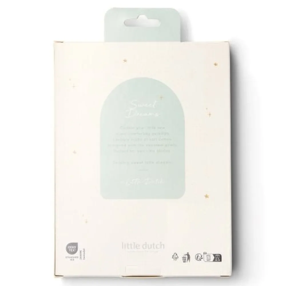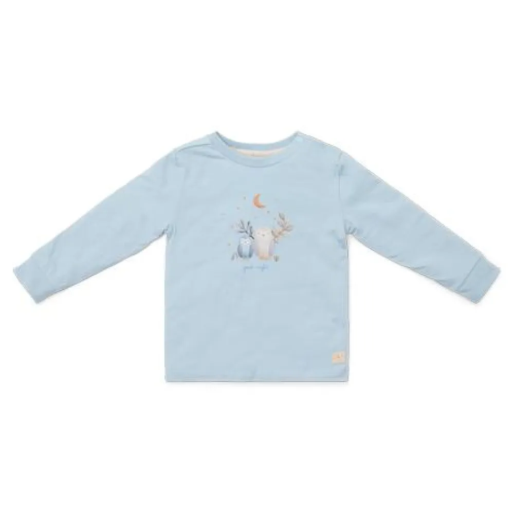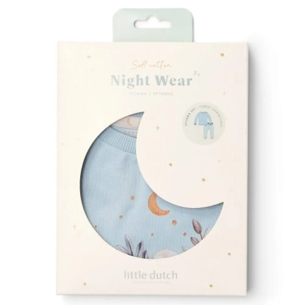 “Slaap zacht,” zegt de wijze uil, “het is tijd om naar bed te gaan!” Geniet van bedtijd in deze schattige pyjama. De lichtblauwe broek heeft een charmante print van blaadjes, uiltjes en andere vondsten uit het bos, en het effen lichtblauwe shirt is versierd met een uil en zijn eekhoornvriendje. Gemaakt van biologisch katoen, is deze pyjama zacht voor je baby’s huid en perfect te matchen met de bijpassende beddengoed. Verpakt in een mooie geschenkdoos en verkrijgbaar in maten 62/68, 74/80, 86/92 en 98/104.