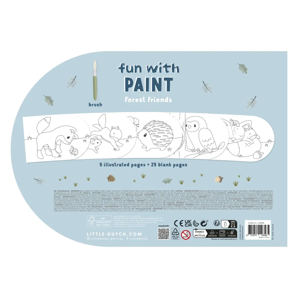 Pak de kwast en dompel je onder in de wereld van Forest Friends. Dit vrolijke verfboek nodigt je kleintje uit om te schilderen, te ontdekken en te creëren. Met vijf geïllustreerde pagina’s vol bosvriendjes en vijfentwintig blanco vellen is er volop ruimte voor fantasie en eigen ideeën.