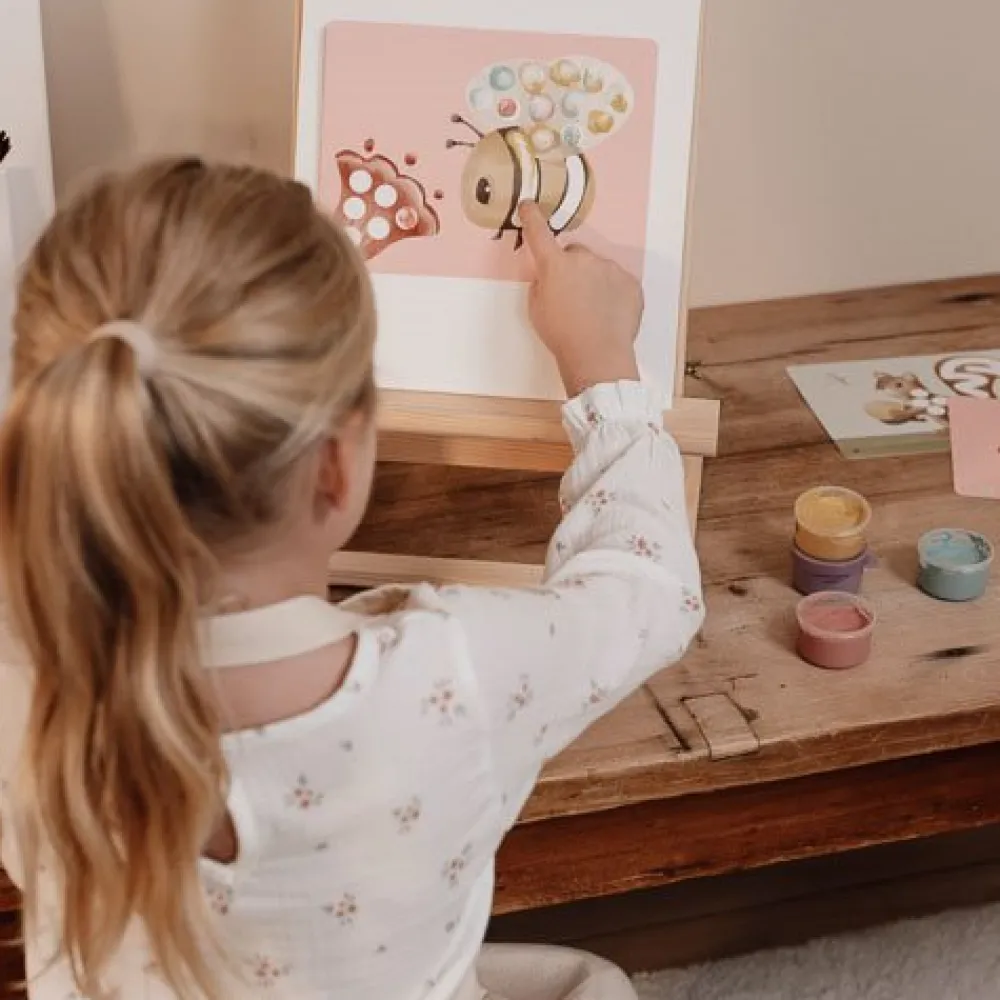 Laat je kleintje spelenderwijs de natuur ontdekken met de vingerverfset uit de Fairy Garden serie. Deze kleurrijke set is speciaal ontworpen voor kleine handjes en nodigt je kleintje uit om zijn of haar creativiteit de vrije loop te laten. Met vier zachte tinten en schattige voorgedrukte kaartjes van bijvoorbeeld een lieveheersbeestje of mooie vlinder kan je kindje meteen aan de slag om de mooiste kunstwerkjes te maken. De verf is veilig en makkelijk uitwasbaar, ideaal voor uren knutselplezier. Terwijl je kleintje de kaarten vult met de kleurrijke verf, stimuleert het de ontwikkeling van de fijne motoriek, oog-handcoördinatie en creativiteit. Laat hun fantasie opbloeien terwijl ze spelenderwijs de wonderen van de Fairy Garden tot leven brengen. Geschikt voor kinderen vanaf 3 jaar.