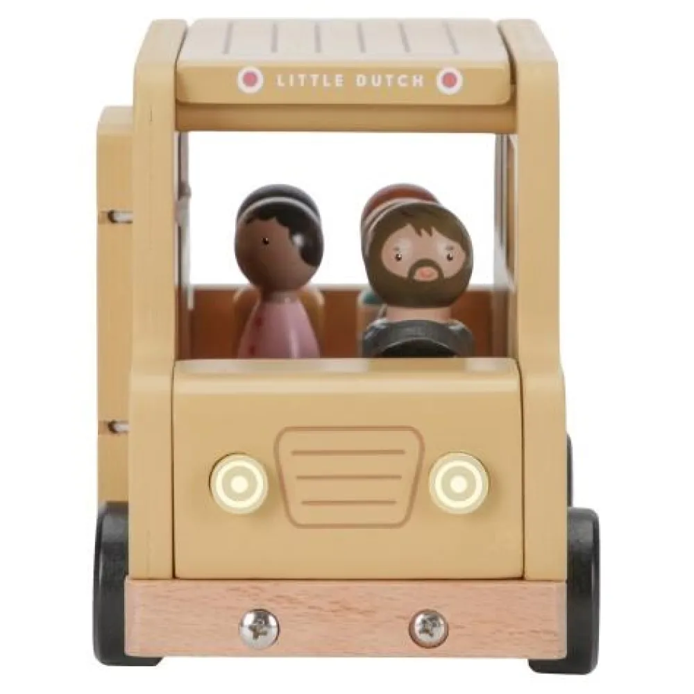 Laat de wielen van deze schoolbus maar draaien. Zitten alle kinderen op hu plek? Zodra de buschauffeur de motor start, begint een reis vol plezier en ontdekking. Of je nu door denkbeeldige steden navigeert of extra passagiers ophaalt, dit houten voertuig brengt je overal waar je maar naar toe wilt. De soepel rollende wielen laten jouw kleintje moeiteloos over de vloer rijden en vriendjes ophalen van elke hoek van de kamer. De deur en het dak van de houten schoolbus kunnen open en de poppetjes passen ook bij het poppenhuis en andere speelsets zoals het vliegtuig en de auto met caravan. Laat je kleintje genieten van een reis vol verhalen met deze veelzijdige houten speelset.