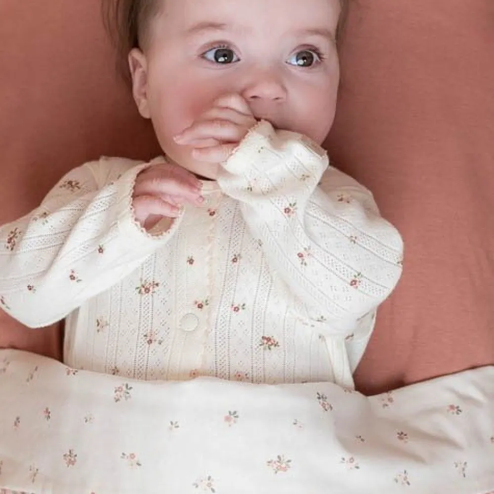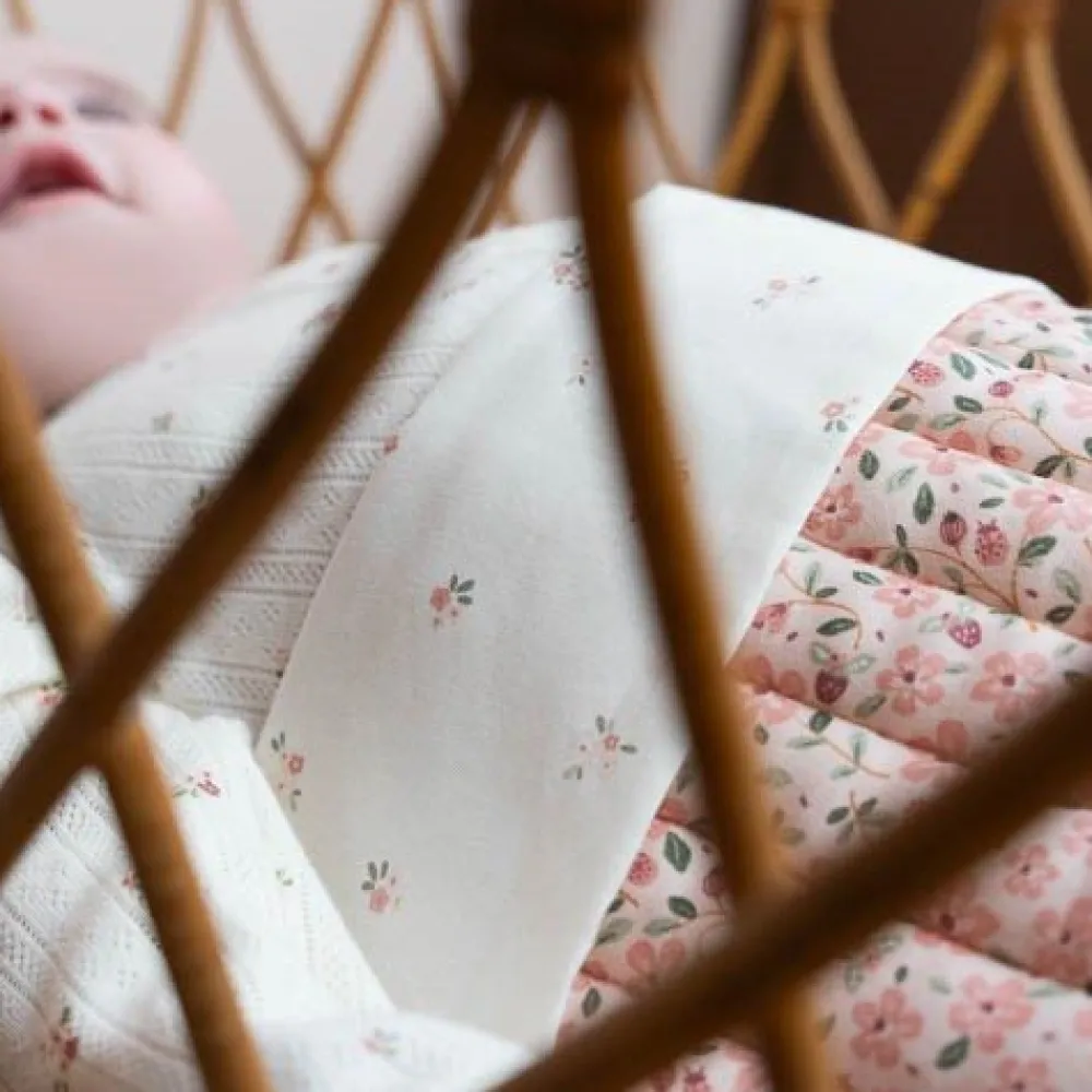 Breng een vleugje sfeer in de babykamer met dit wieglaken uit de Fairy Garden-collectie. Gemaakt van 100% biologisch katoen, zorgt dit laken ervoor dat je baby zich comfortabel voelt en heerlijk weg zal dromen. De zoom van het laken is versierd met lieve bloemetjes van het Fairy Blossom dessin. Vouw het laken eenvoudig over een Little Dutch deken om een extra laagje warmte en stijl aan het wiegje toe te voegen.